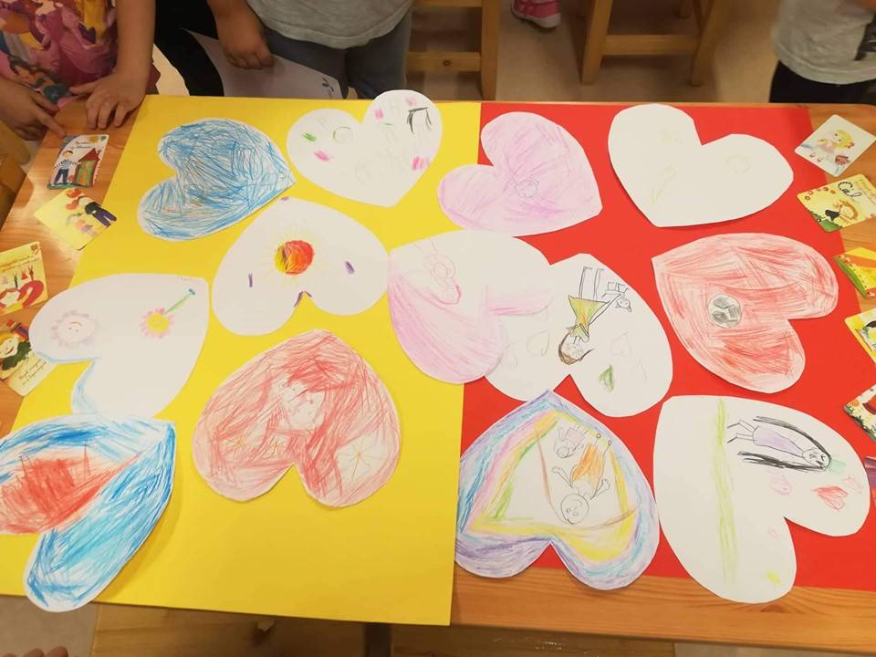A foglalkozás végén mindenki kiszínez illetve megrajzol egy hálát jelképező szívet, és elhelyezi a boldogság tablónkon.