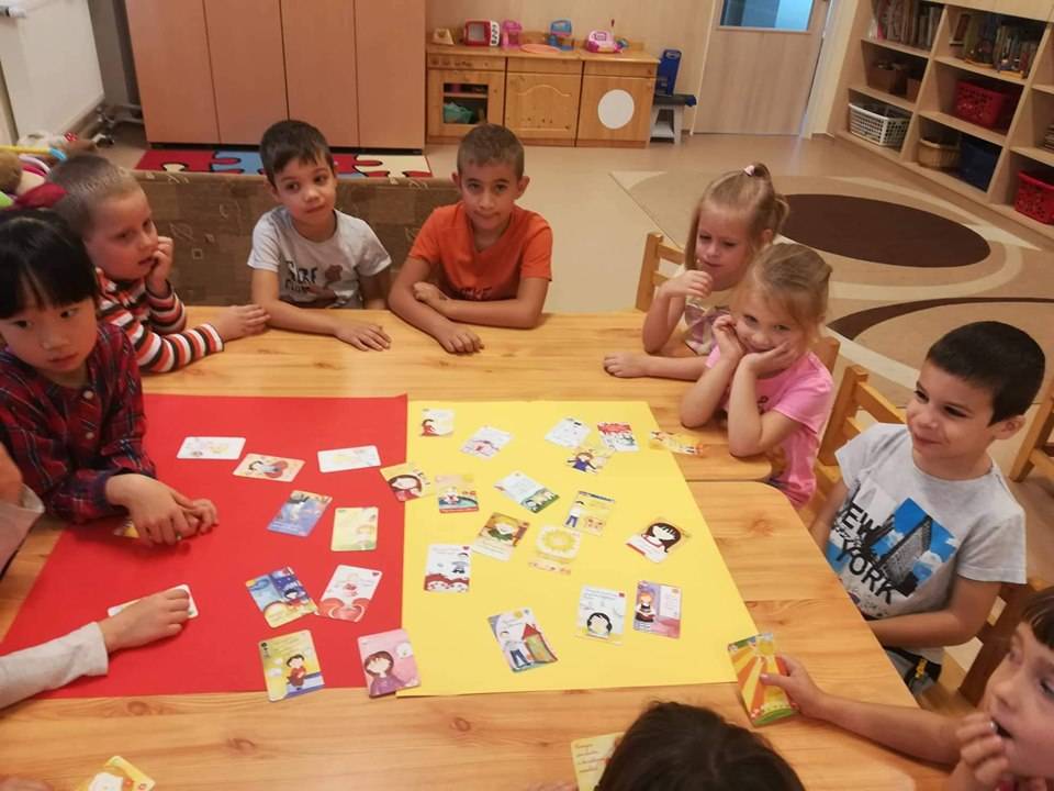 Reggeli ráhangoló beszélgetés során arról beszélgetünk, hogy ki minek örült, miért volt boldog, hálás reggel a felkeltéstől az óvodába jövetelig. Megsimogattuk, megölelgettük egymást, pozitív dolgokról, barátságról, szeretetről beszélgetünk.Majd ráhangolódás képen Bagdy Emőke relaxációs gyakorlatát végeztük. Körbe-körbe-karikába