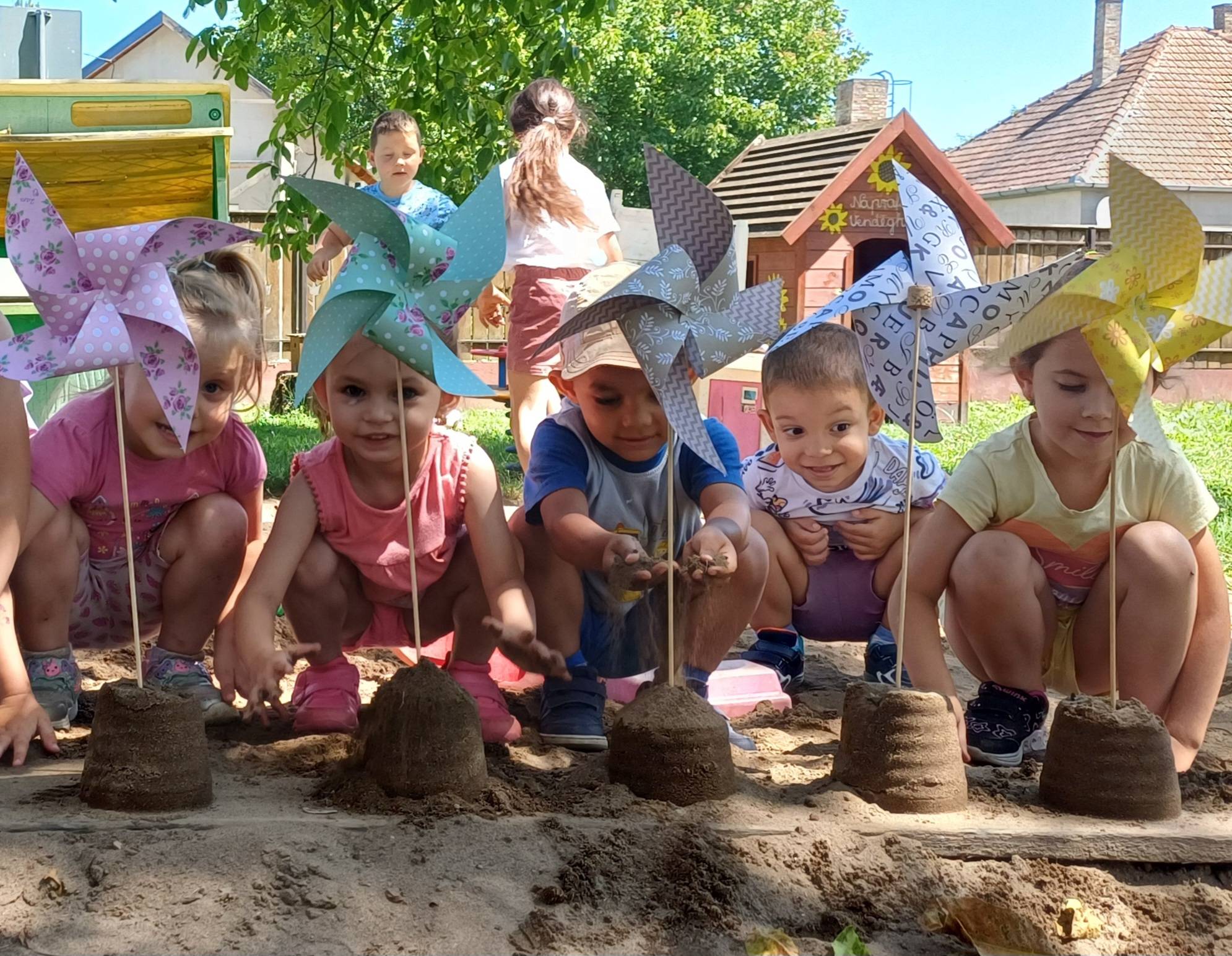 Az év végét rengeteg élménnyel zártuk. Először a gyermeknapi játékok szereztek sok-sok élményt, nagyon sokat nevettünk, játszottunk. Volt csillámtetkó, ugrálóvár, közös játékok. Barkácsoltunk szélforgókat, amit ugyancsak nagy örömmel próbáltak ki a gyerekek, s még a homokozós játékba is felhasználták, díszítésnek. Minden évben elmegyünk a község levendulásába, ahol nagyon szeretnek lenni a gyerekek, hiszen ugyancsak együtt vagyunk kint a természetben, virágok között. Később pedig a leszedett virágokból ajándékot készítünk. Az év zárásaként kirándulni mentünk, megnéztük a Nyíregyházi Állatparkot, ami nagyon nagy élményt szerzett a gyerekeknek, felnőtteknek egyaránt.