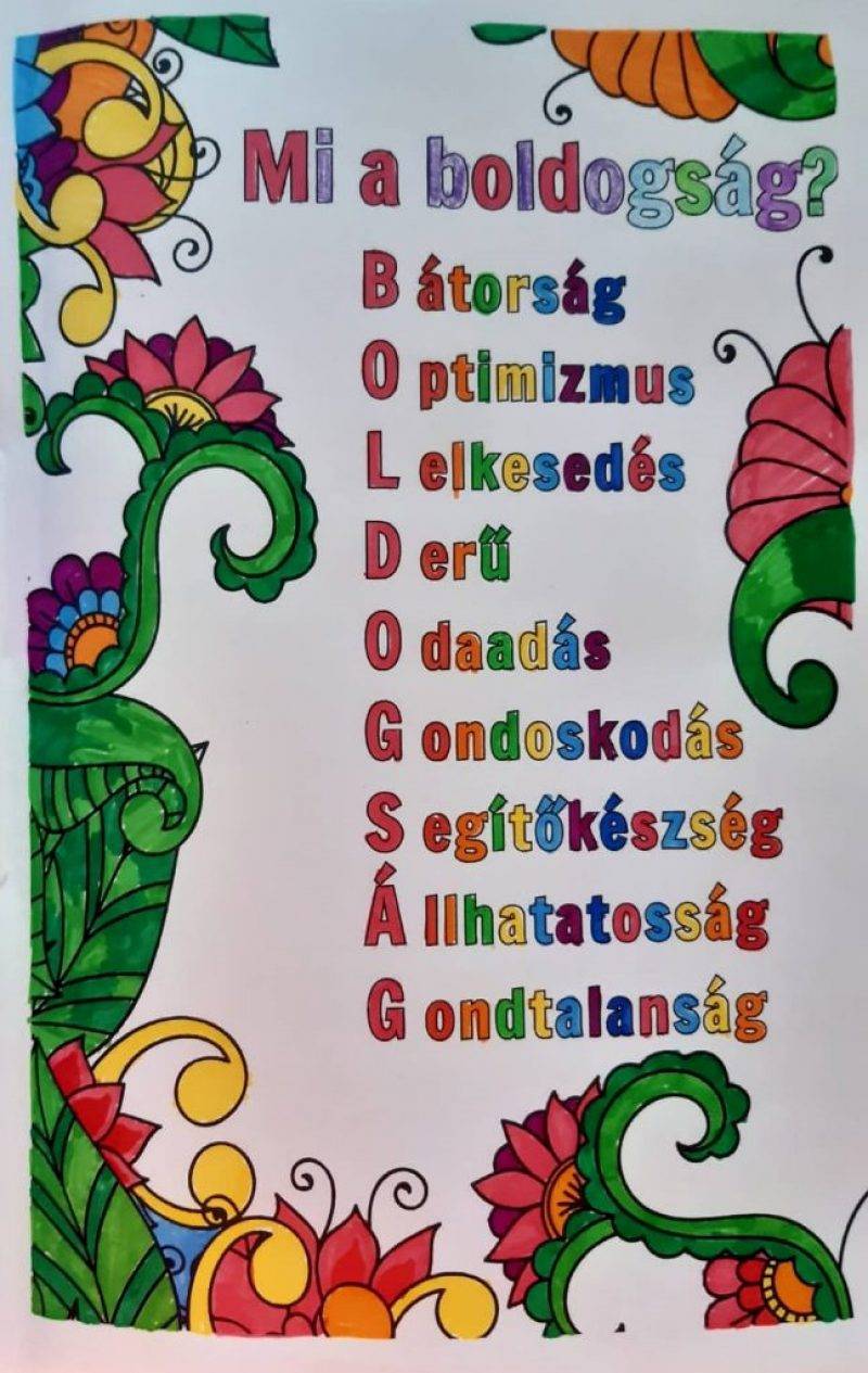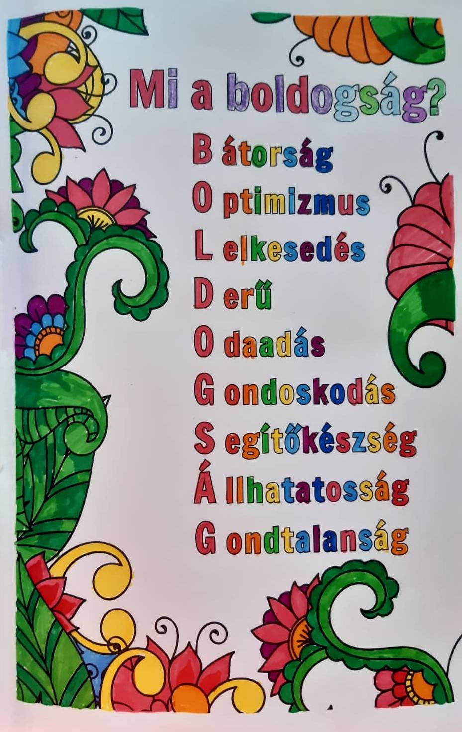 A 2021/2022-es tanévben tartottam először boldogságórát a negyedikeseimnek. Nagyon tetszett, amit a korábbi években csatlakozott kollégáim meséltek az órákról, így kedvet kaptam én is hozzá. Nagy reményekkel és elvárásokkal fogtam hozzá a boldogságórák tervezéséhez és megvalósításához. Szerencsére nem csalódtam. Jó hangulatú, időnként mély gondolatokkal átszőtt óráinkat nagyon élvezték a gyerekek.