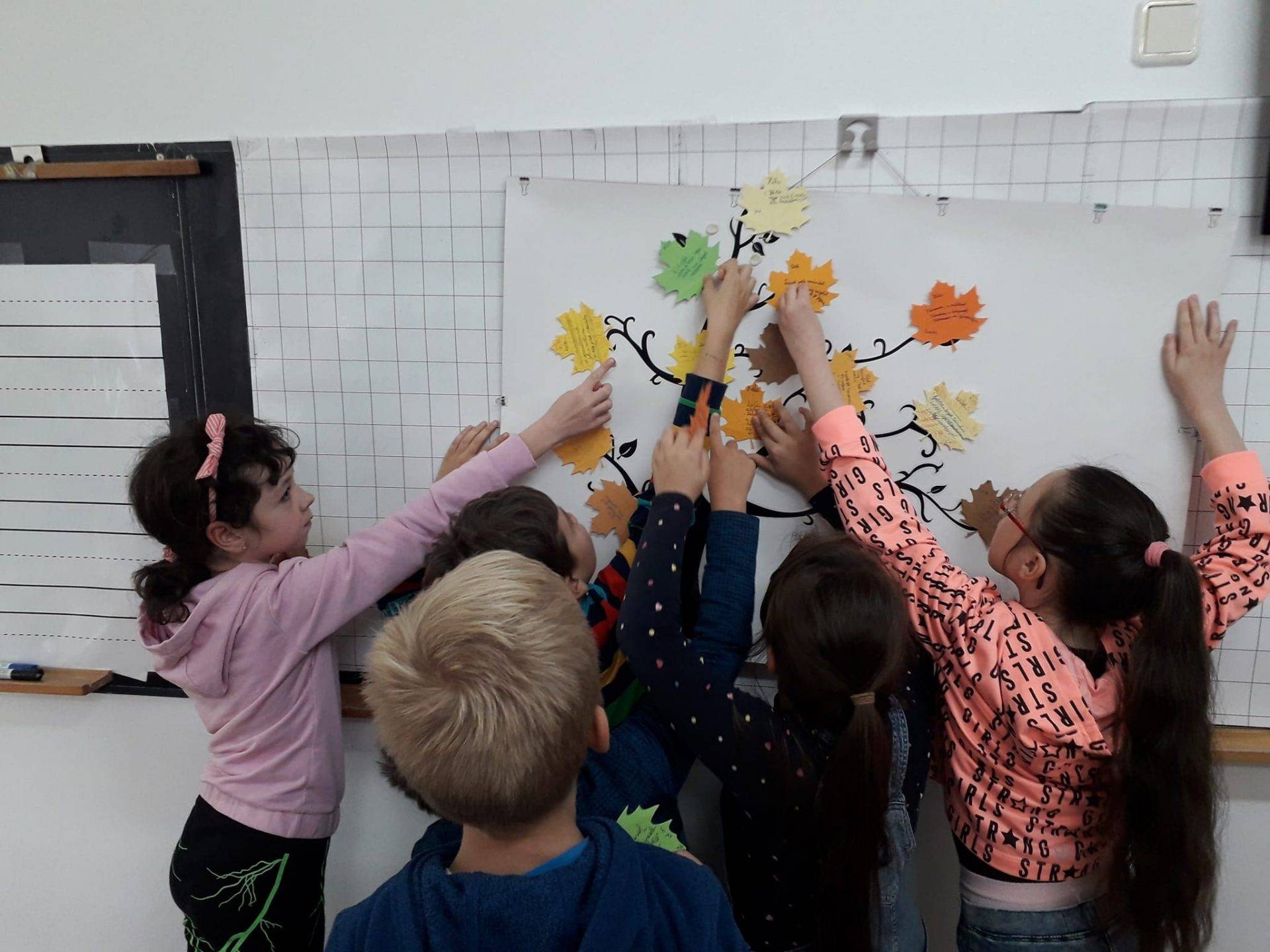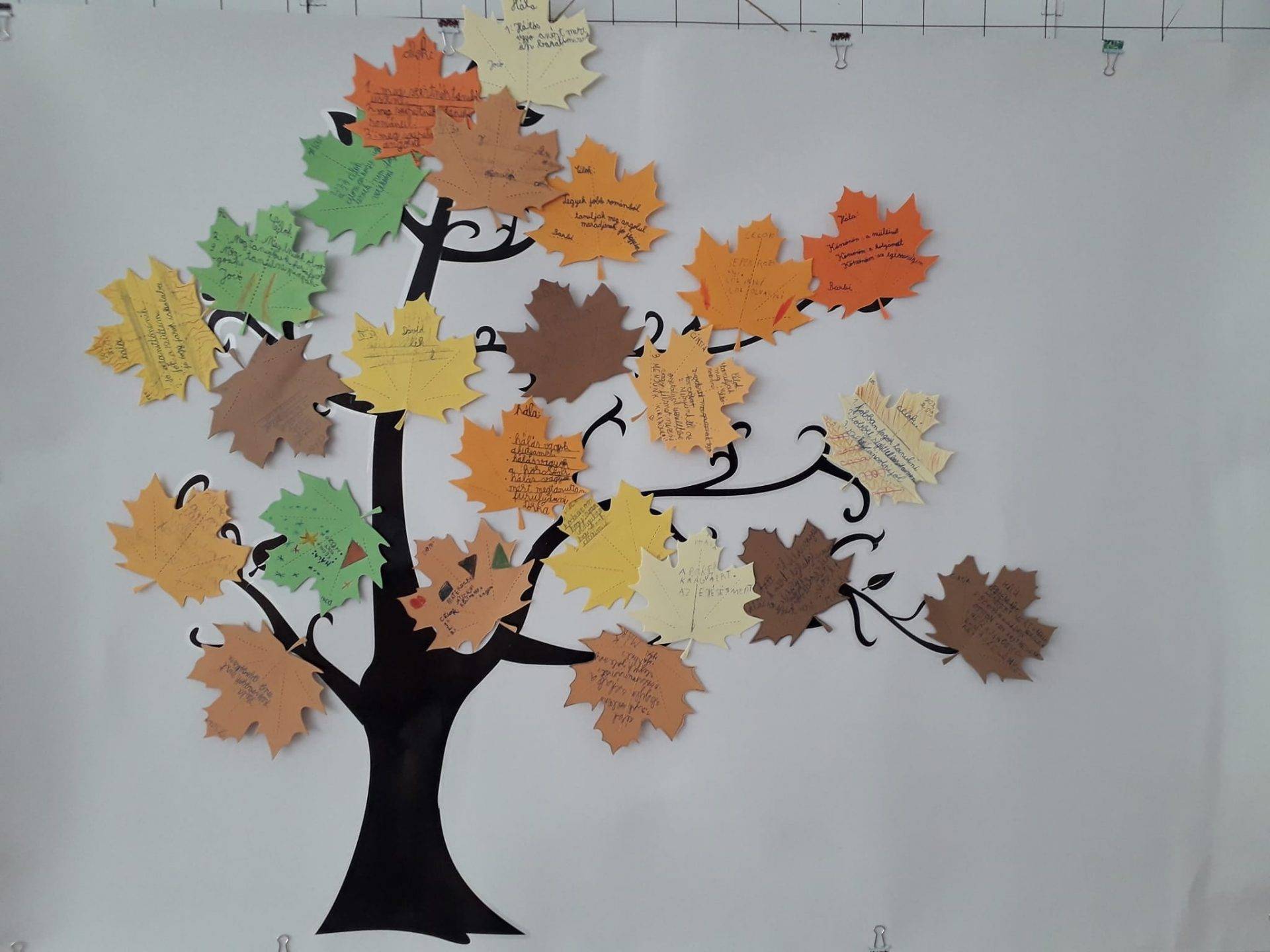 Mindenki kapott egy falevelet, amire felírhatta, miért hálás. Közösen készítettük el a hála-fát.