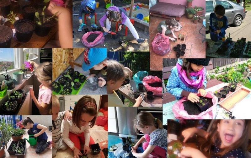 Közös karantén-kertészet, társas kapcsolatok ápolás: Virágmagok és palánták ültetése, magok csíráztatása. Mindenki ugyanazokat a növényeket nevelte otthon és a tapasztalataikat, eredményeiket írásban, rajzokon és videó üzenetekben osztották meg egymással.