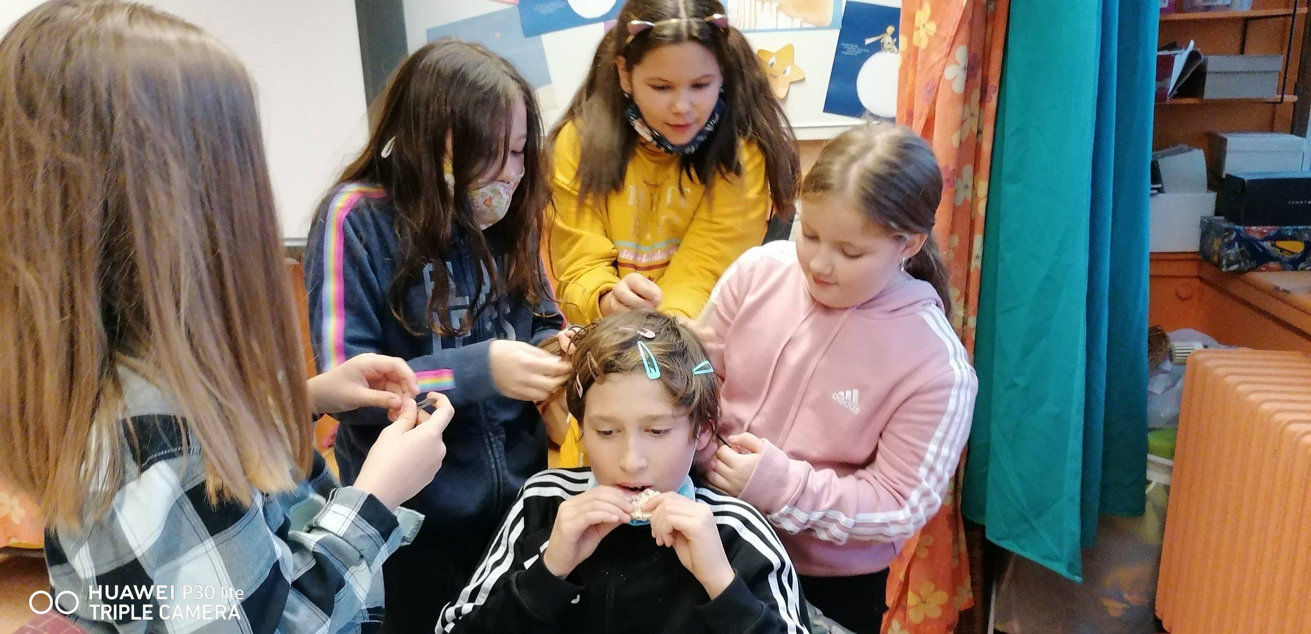 Február a Megküzdési stratégiákról szólt. Sok stresszkezelő technikát kipróbáltunk, relaxálhattak, élveztük a játékokat is. Megrajzolták a megküzdés szivárványát és egyre jobban sikerült nekem is bevonni őket a különböző feladatokba. A legnehezebb volt saját magukkal megküzdeni, engedni a másik ember szóhoz jutni, meghallgatni. A hónaphoz kapcsolódó kisfilm elvarázsolta őket, a Hajvarázs című játékban örömmel varázsoltak egymásnak jópofa frizurákat.