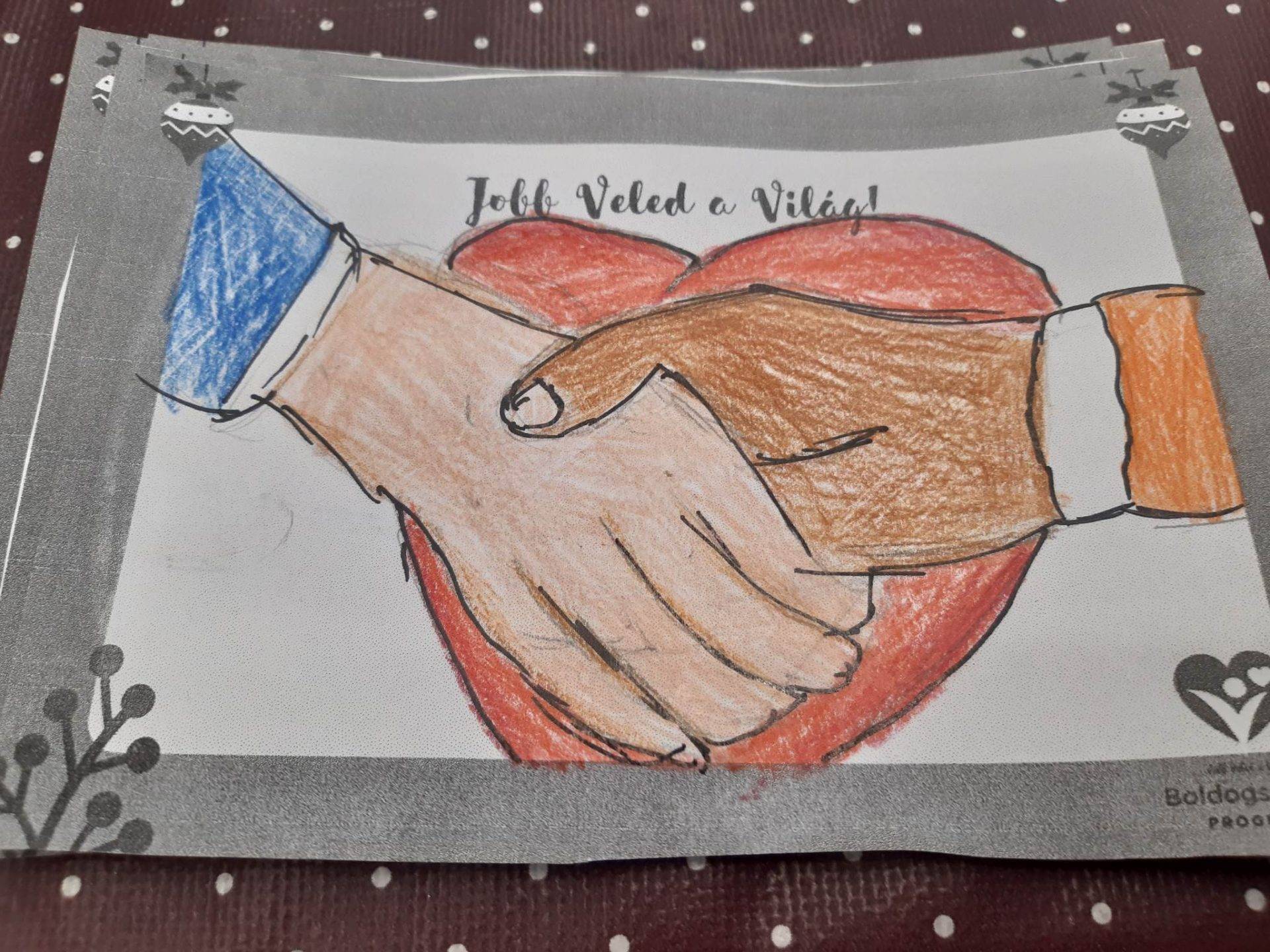 A gyerekeknek el kellett képzelniük egy diákot, aki valamiért nehéz időszakon megy keresztül, vagy mostanában nehéz sora van. Lehet, hogy nehezen talál barátokat, vagy nem sikerül olyan jó jegyeket szereznie, amilyeneket szeretne, vagy sokat veszekszik a testvérével. Beszélgettünk arról, még milyen nehézségei lehetnek. Ezután mindenki készített egy képeslapot, a megadott sablonnal, amit az elképzelt személynek szeretett volna ajándékozni, jelezve ezzel, hogy mellette van a nehézségekben. A feladattal azt kívántam hangsúlyozni, hogy mindenkinek jól esik tudni, hogy nincs egyedül, és néha egy kis, szeretetteljes gesztus is segíthet széppé tenni a napot.