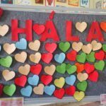 Új elemként merült fel az ötlet, hogy ne csak mi „menjünk ki” a faluba, hanem a szülőket is vonjuk be az ünneplésbe, csábítsuk be őket az iskolába. Ennek jegyében a tanulókkal együtt Boldogságnapi faliújságot készítettünk, melynek központi eleme egy Hálafal volt. A szülők, pedagógusok és gyerekek egyaránt írhattak színes papírszívecskékre rövid gondolatokat arról, hogy miért éreznek hálát az életükben. A szívecskéket a folyosó paravánjára tűztük ki, és hetekig olvastuk meghatódva a szeretetteljes, elgondolkodtató, őszinte üzeneteket.