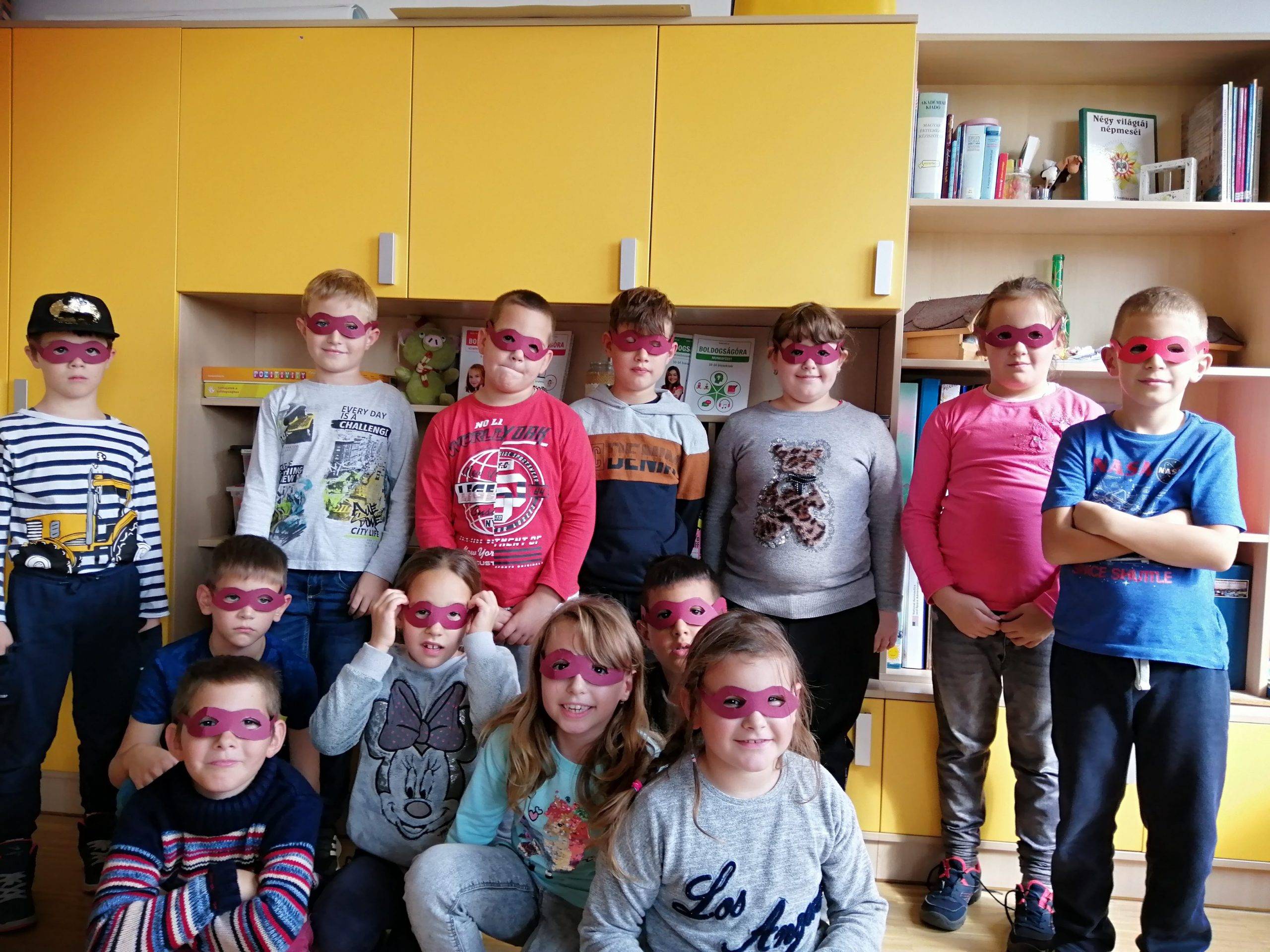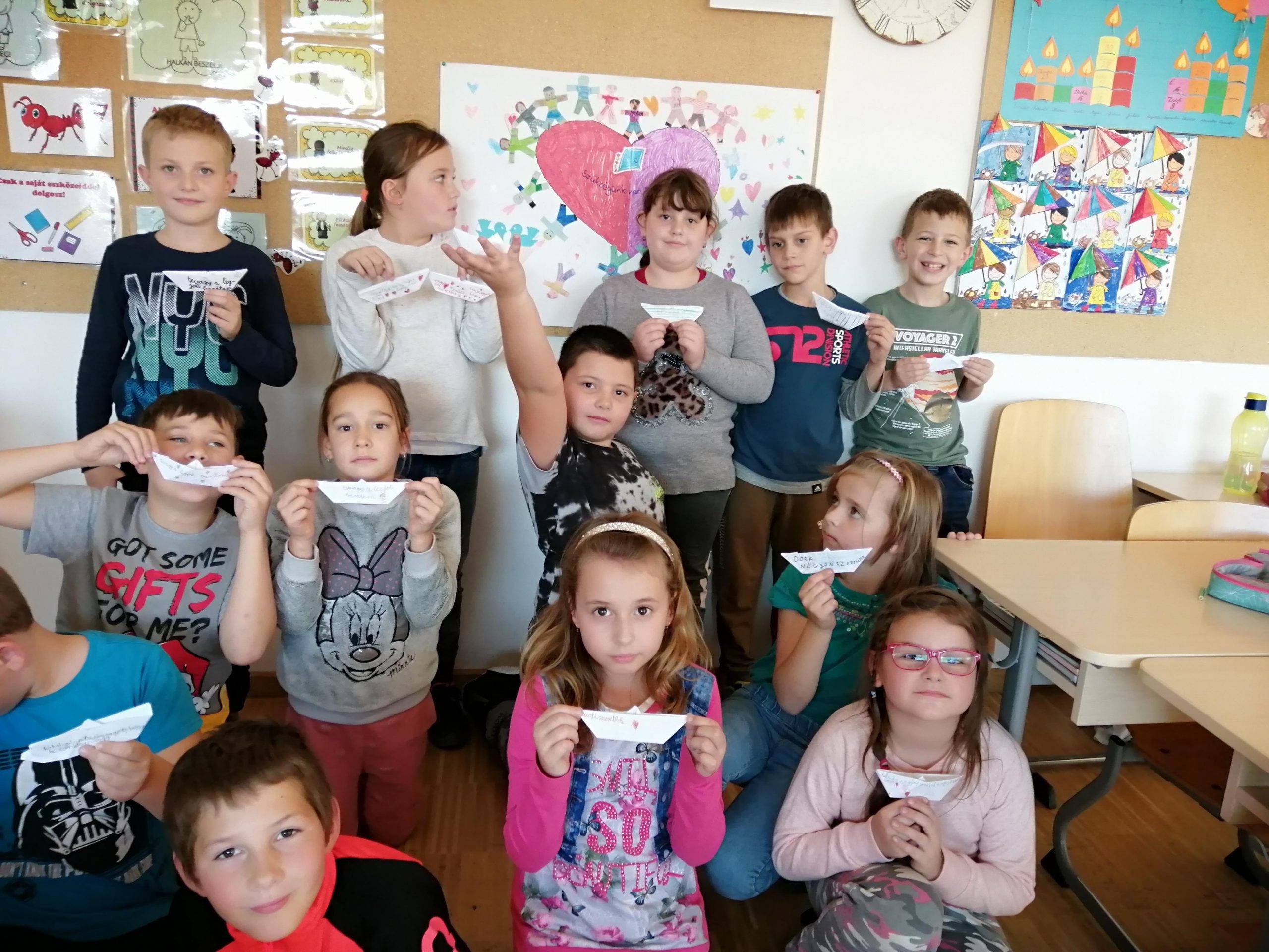 A novemberi Boldogságórák nagyon tartalmasak és sokrétűek voltak. A társaskapcsolatok ápolásához sok önismereti és együttműködést segítő játékot játszottunk. A foglalkozásokra történő ráhangolódásnál gyakran használtam a „Pozitív gyerek vagyok” kártyacsomagot. „Milyen érzésekkel érkeztél ma az iskolába? Hogy érzed most magad?” Általában ezekkel a kérdésekkel indítottam az órákat. Az érzelmek megfogalmazása eleinte nehezen ment a gyerekeknek. Ennek fejlesztésére sokféle játékos feladatot terveztem be. Pl. „Távirat”, amelyben arckifejezéssel kellett megjeleníteni a különböző érzelmeket. Ez a játék a szókincs fejlesztését is segítette azzal, hogy megneveztük a különböző érzelmeket, de a metakommunikáció fejlődéséhez is hozzájárult.