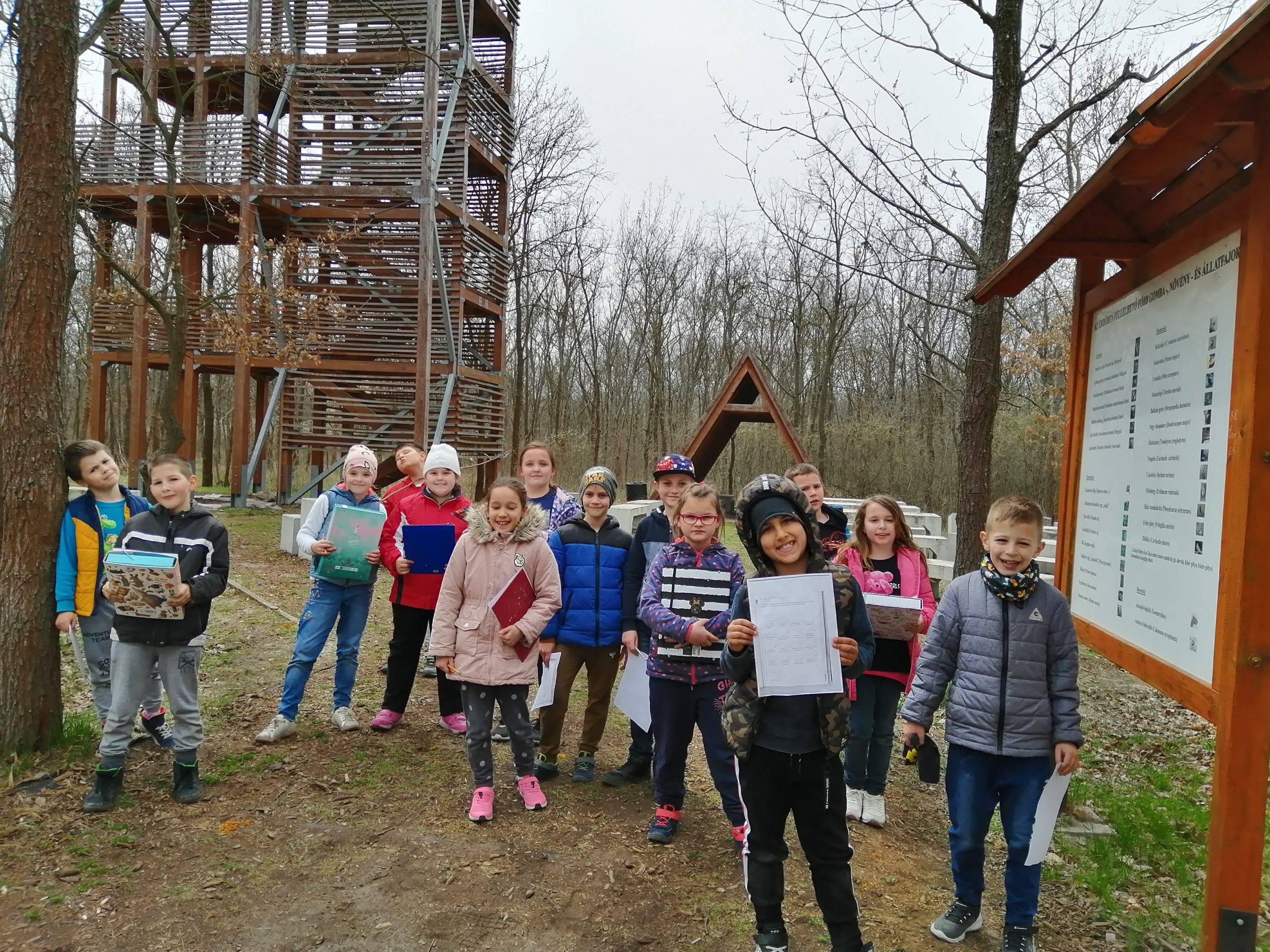 Örömsétára is elmentünk a közeli erdőben található kilátóhoz. Szempontsort vittünk magunkkal az örömet okozó dolgok felismeréséhez.