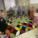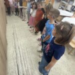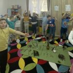 A környezetükben lévő legvastagabb és legvékonyabb törzsű fáról méretet hoztak zsineggel. Majd összemértük a terem padlóján. Ez lett a “Mi erdőnk!”