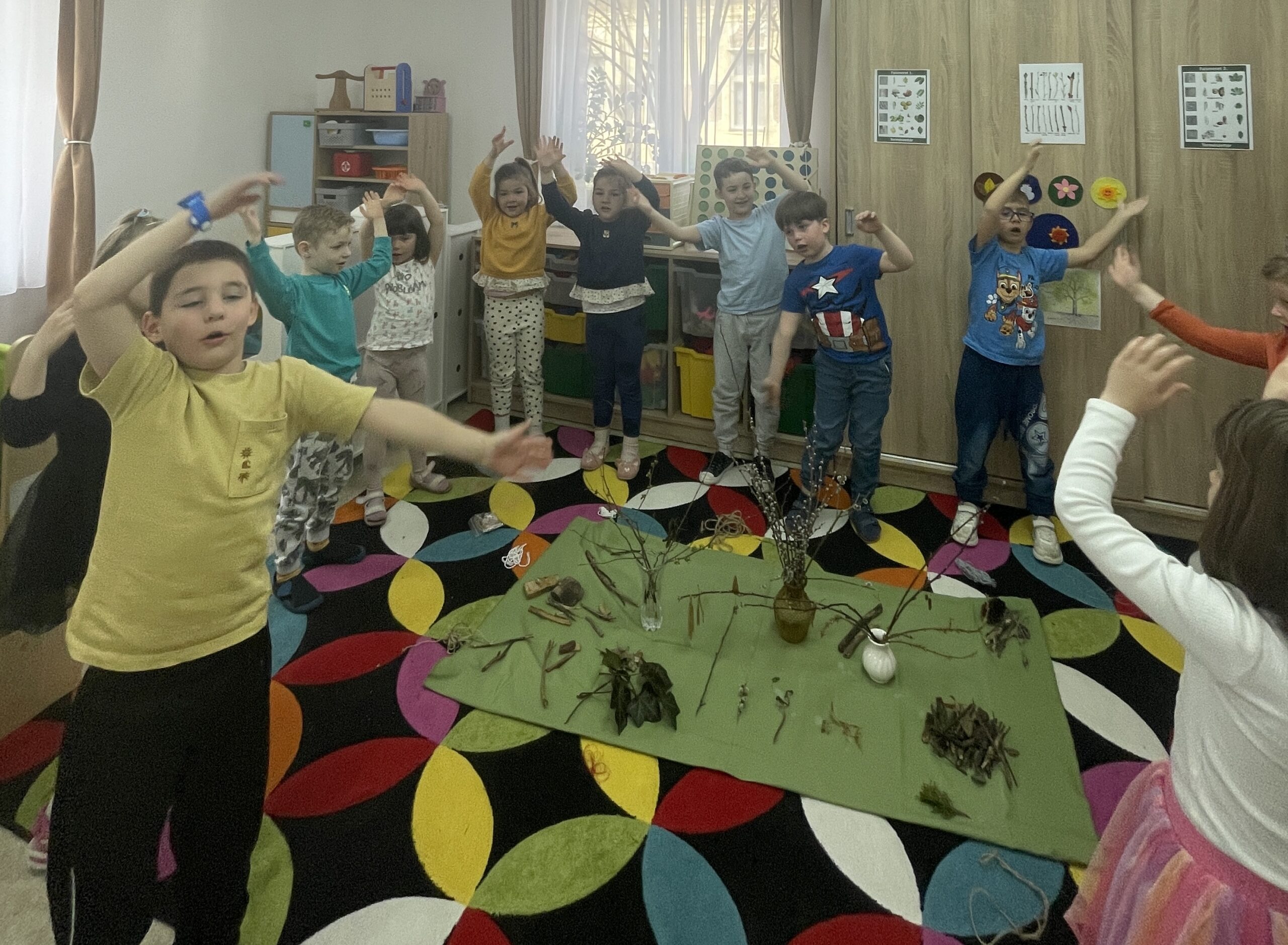 Megtanultuk a “Boldog mondókát”, mozgással a hét folyamán többször eljátsztuk, és az “Imádok élni” dalt is meghallgattuk.