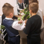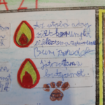 Elkészítettük a Szent Márton napi jócselekedetek lámpásait is: a gyerekek apró lángocskákra írták fel azokat a jócselekedeteket, amiket napjaik során végrehajtottak. Ezeket a lángokat ragasztották fel a lámpásukra, ezáltal láthatóvá vált, milyen fényt gyújtottak jóságukkal.