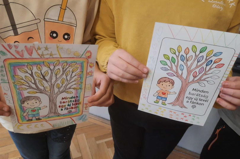 A BARÁTSÁGFA alkalmas arra, hogy a gyerekek láthatóvá tegyék kapcsolataikat: beírhatnak minden levélbe egy barátot, akit szeretnek.