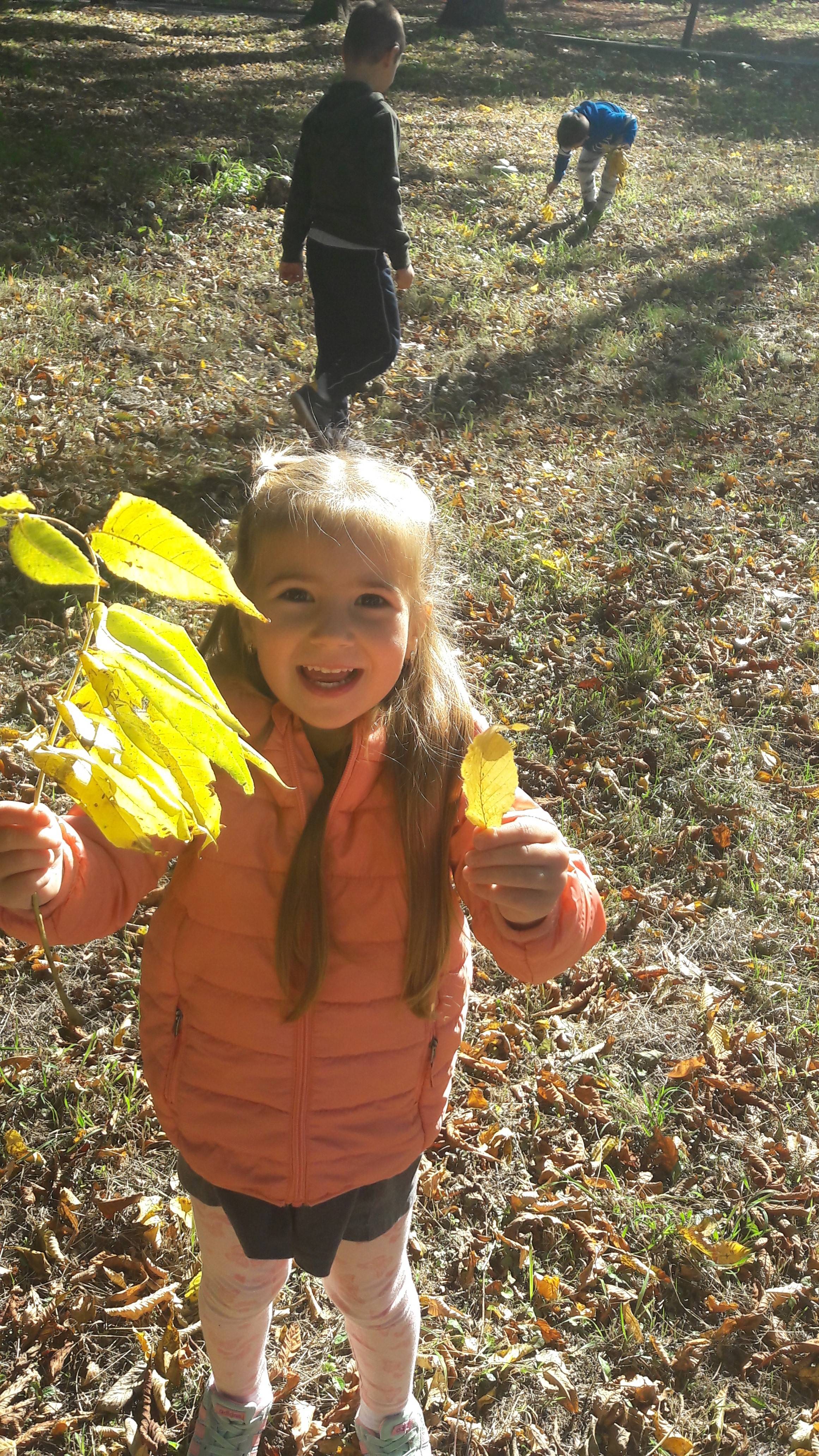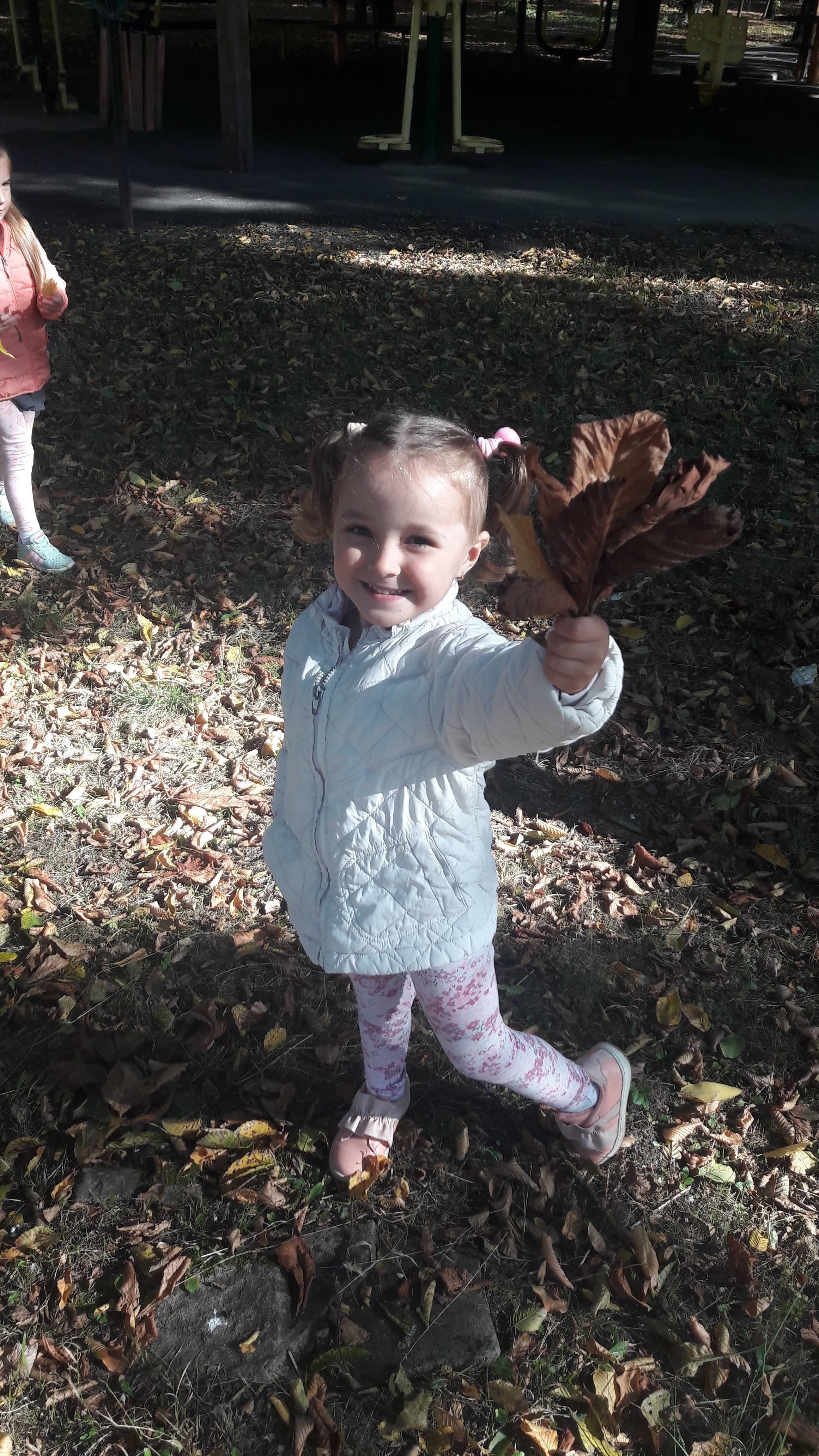 A gyerekek faleveleket gyűjtögettek az óvodánk melleti sétatéren, majd a legszebb faleveleket haza vitték és megajándékozták azt a személyt, akinek ők nagyon hálásak