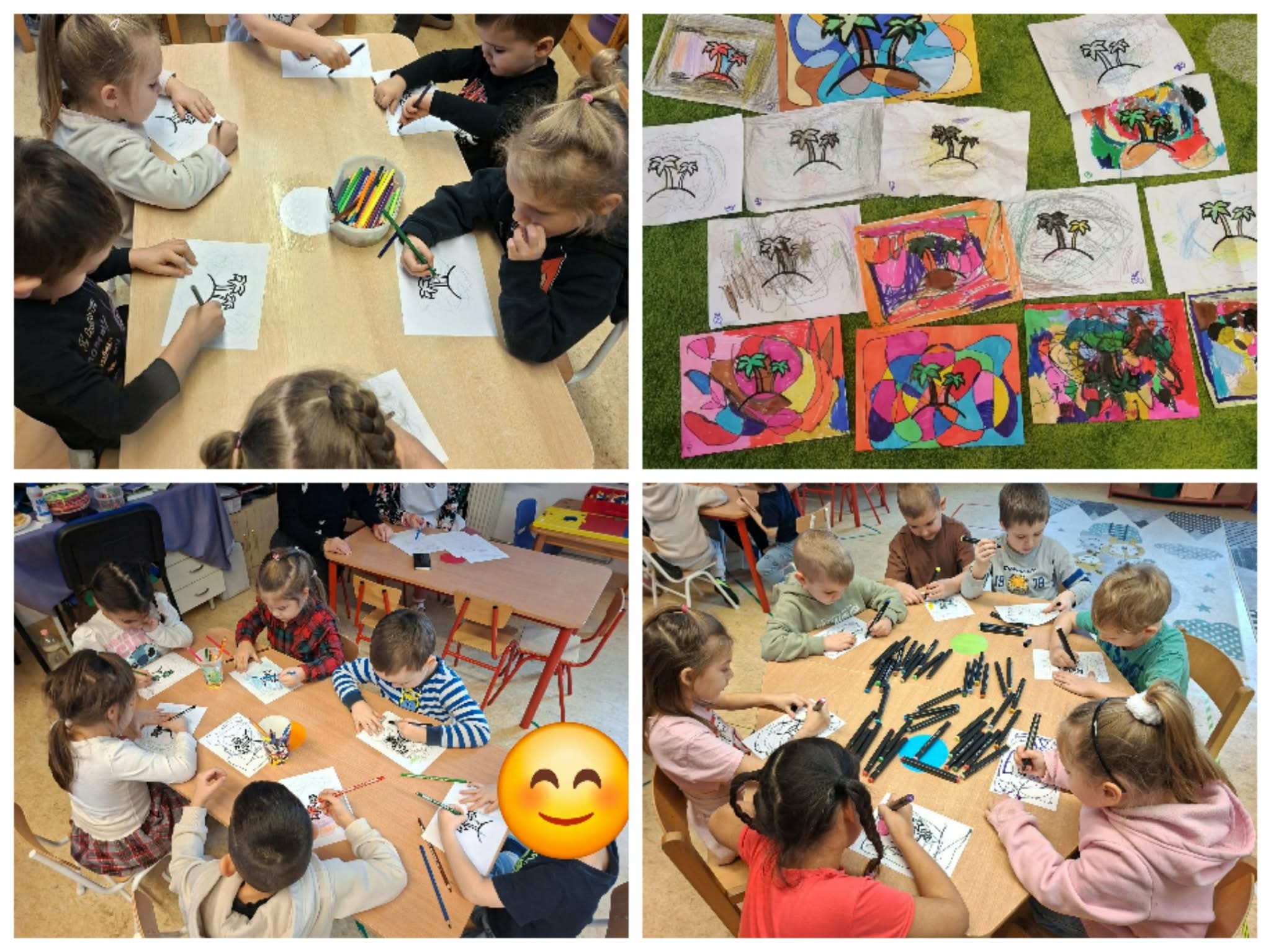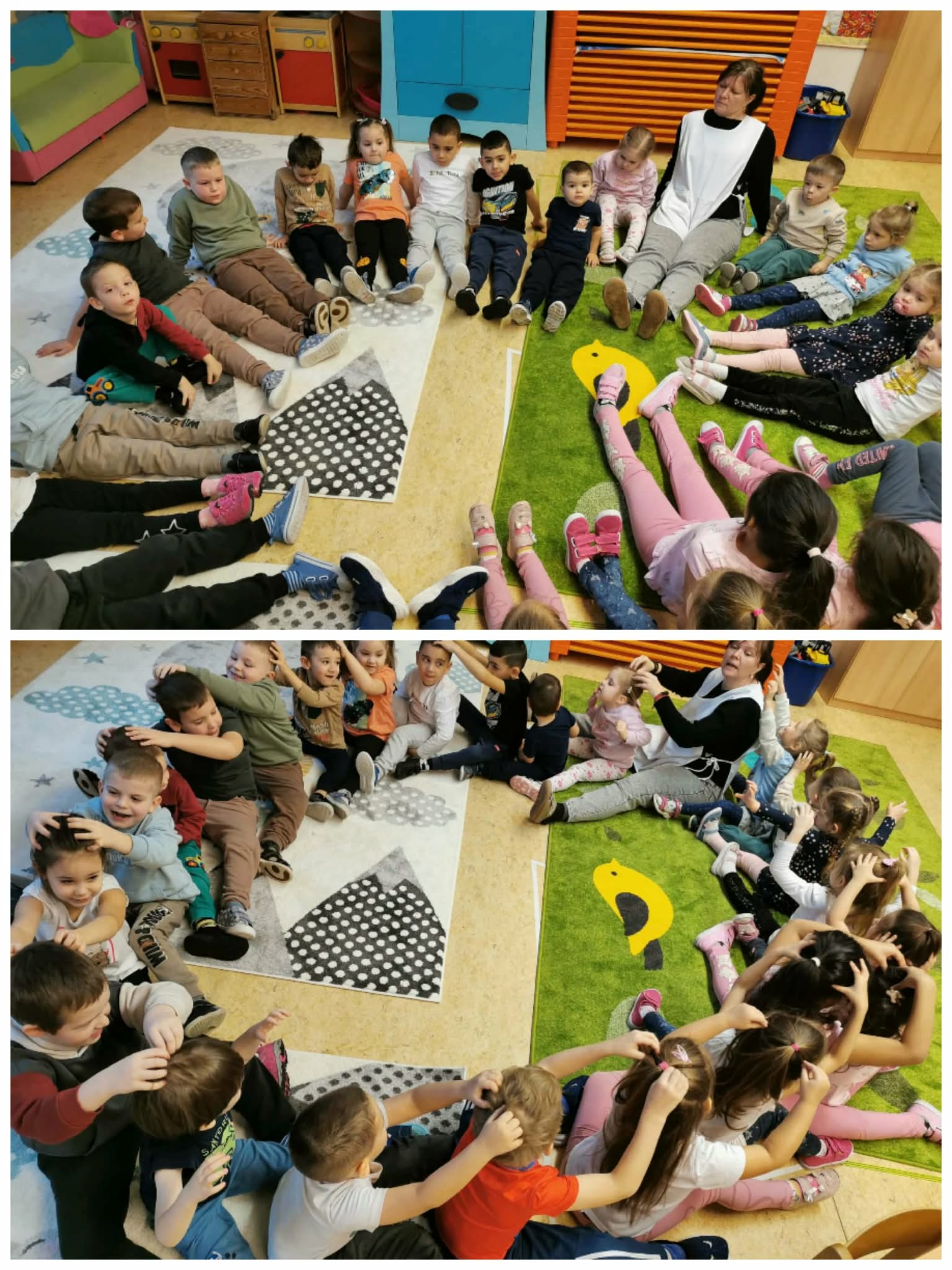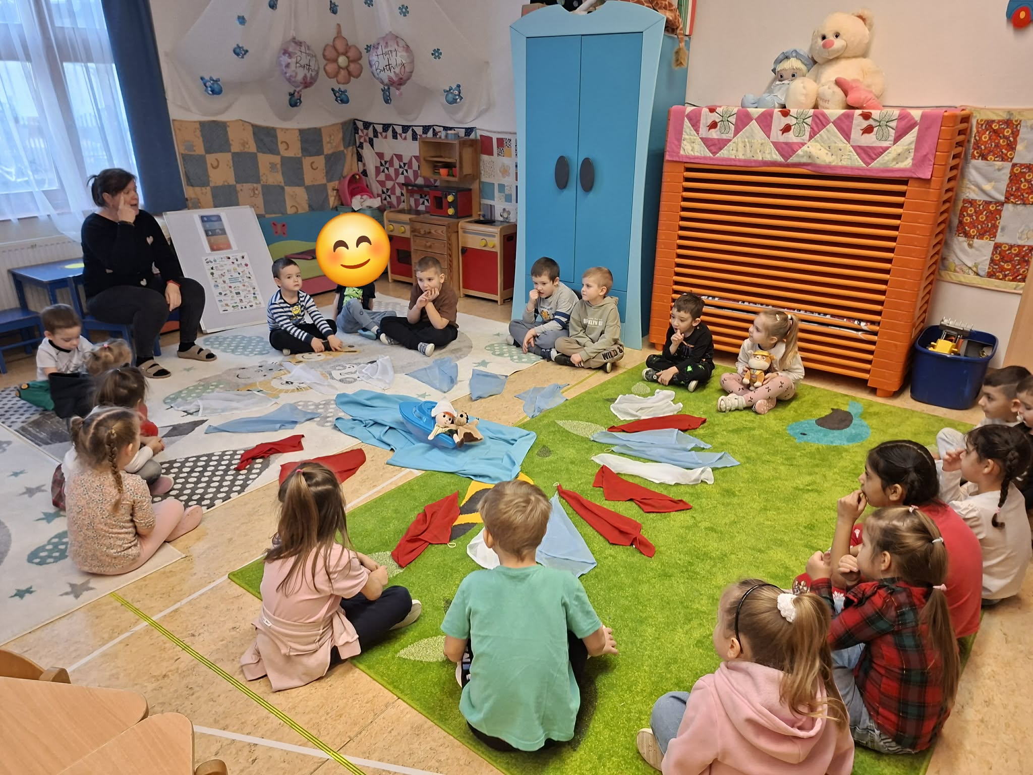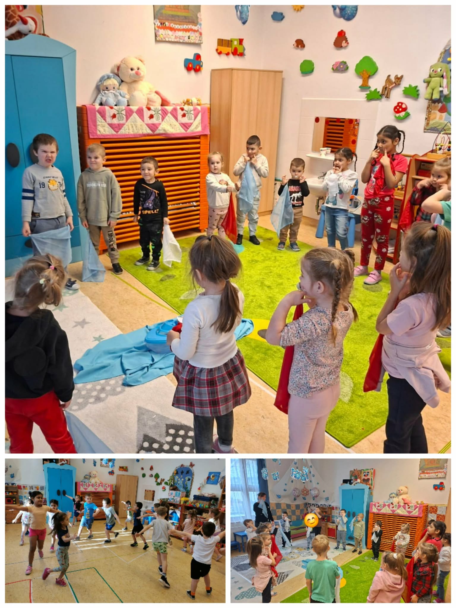 Februárban olyan megküzdési stratégiákkal ismerkedtünk, amelyek segítenek a stresszes helyzetekben gyermeknek, felnőttnek egyaránt, hogy megtalálja azt az egyensúlyt, amely segít az akadályok leküzdésében. Beszélgetéseink során szóba került a félelem, a tanácstalanság, a düh, a szorongás. Szívmanó Nyugilégzés kártyái nagy segítséget nyújtottak, hogy a nehéz helyzetekben megnyugodjunk és cselekedni tudjunk. Akadálypályák leküzdésével legyőztük félelmeinket, kitartásunkat fejlesztettük, vagy ha úgy adódott kudarctűrő képességünk fejlődött. Mindeközben megtanultuk azt is, hogy segítséget kérni lehet. Pillanatkapitány és a Nyugalom szigetének története jól illeszkedett e havi témánkhoz. A történetben szereplő mindfulness technikákat saját profilunkra alakítva közvetlenül próbálhattuk ki és gyakoroltuk azokat a módszereket, melyek önmegnyugtató stratégiákként hozzájárultak a stresszel való megbirkózáshoz, az érzelmeink kezeléséhez. 10-ig elszámolva volt időnk, hogy visszanyerjük az irányítást érzelmeink felett. A „Sűrű erdő, sík mező”…kezdetű mondóka záró szava: „Ölelgető” számos alkalmat nyújtott arra, hogy társaikat megölelhessék, amikor szomorúak vagy stresszesek voltak. A humor, a csiklandozás eredményeként való kacagás, nevetés szintén jó stresszoldó a mindennapokban. A már jól ismert hála érzése, kifejezése szintén a pozitív gondolatok felé terelte a figyelmünket. Bagdi Bella: Ellazulni jajj de jó dalához kendőket használva simítottuk végig testrészeinket lágy szellőként, majd feszítettünk, lazítottunk, táncoltunk. A relaxáció ezen formájának gyakorlása mellett mozgásimprovizációt is végrehajtottak, mellyel fejlődött ritmusérzékük, fantáziájuk, kreativitásuk. A mozgásnak a hónap folyamán a stresszoldás tekintetében kiemelt figyelmet szenteltünk. Nagyokat sétáltunk, mozgásos szabályjátékokat játszottunk, a farsangi időszakban rengeteget táncoltunk önfeledten. Kipróbáltuk, hogy milyen érzést kelt bennünk, ha valaki finoman megmasszírozza fejünket, vállunkat, hátunkat. Volt, aki jól fogadta ezt, volt, akinél csiklandozó érzést okozott, de volt, aki számára kellemetlen volt. Ebben az esetben ezt a stresszoldó technikát mellőztük nála. Szívmanó légzéstechnikái közül a hegylégzés tetszett a legjobban a gyerekeknek. Talán azért, mert ezt tudtuk leginkább elképzelt játékba illeszteni. A hegyre felfelé menve beszívtuk a levegőt, majd a hegyről óvatosan leereszkedve, lassan kifújtuk azt. Ezt az 5 ujjunkon megismételve nyugodtabbak lettünk, koncentrációnk javult. A zenén, táncon kívül a művészet más ágát is felhasználtuk, hogy egy újabb önmegnyugtató technikát ismerjenek meg a gyerekek. A Nyugalom szigetének rajzát lendületes vonalvezetéssel osztottuk részekre, mely mozdulatok már önmagában is stresszlevezetőek, majd színezéssel folytattuk a gyakorlatot. Hiszem, hogy a megismert technikák, azok felelevenítése egész életük során segítséget nyújt majd a nehéz helyzetekkel való megküzdés során.