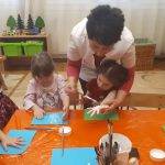 Megbeszéltük a kisfilmben történteket, majd szívesen csatlakoztak a kiskecske tenyérnyomatos elkészítéséhez. A foglalkozás végén meghallgatták, majd ők is énekelték az „A part alatt…” c. népdalt.