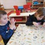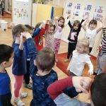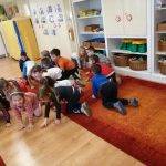 Természetesen nagyon ügyesen kiállták a boszorkány próbáját, így jutalmul meg tudtuk nézni az animációt, amely nagyon tetszett nekik. A történet után megbeszéltük a látottakat, majd mozgásos drámajátékkal megjelenítettük a két szereplőt. Mókásra sikeredett ez a játék is 🙂 Ezt követően a „Kecske-becske” dalos játékot játszottuk el, mely ismét sok mókát hozott a tevékenységbe.