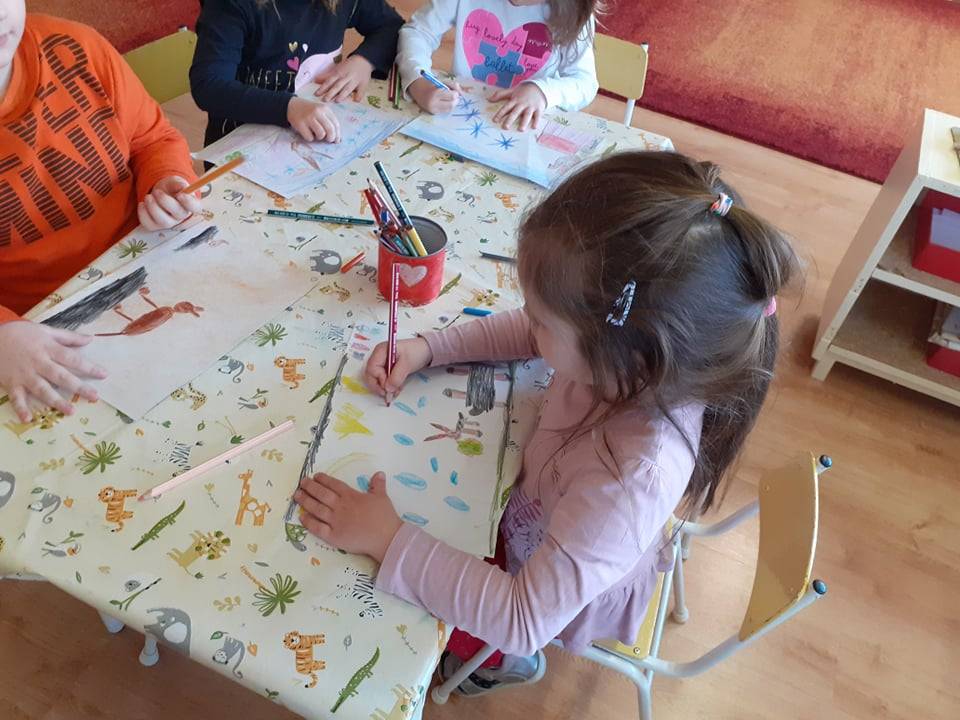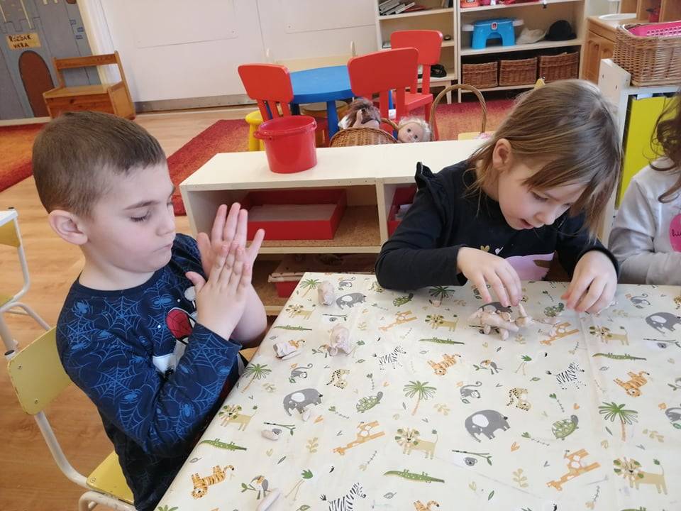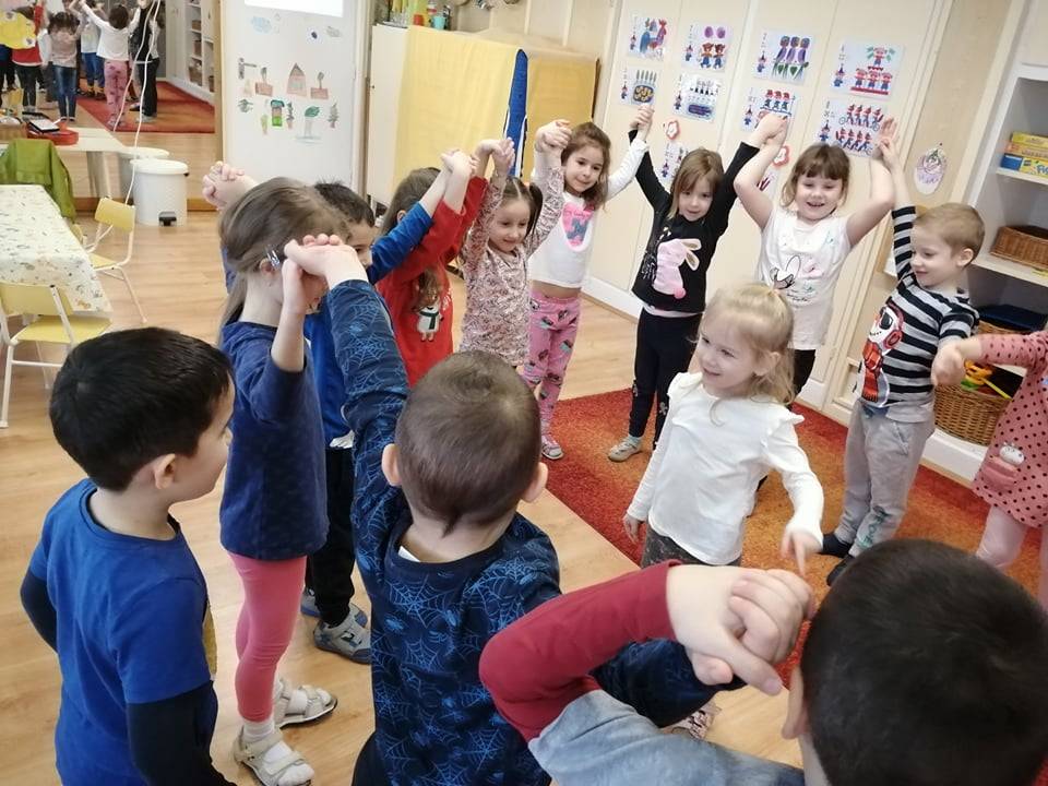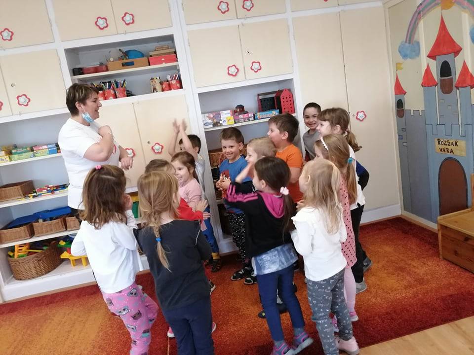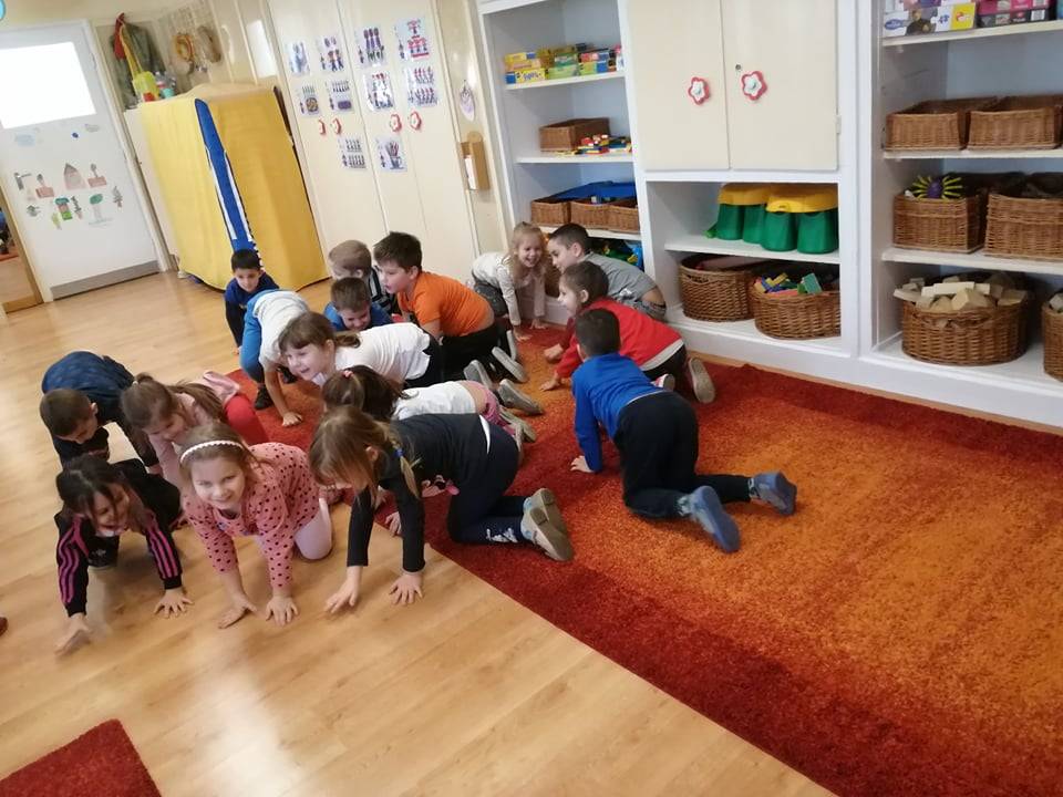 Természetesen nagyon ügyesen kiállták a boszorkány próbáját, így jutalmul meg tudtuk nézni az animációt, amely nagyon tetszett nekik. A történet után megbeszéltük a látottakat, majd mozgásos drámajátékkal megjelenítettük a két szereplőt. Mókásra sikeredett ez a játék is 🙂 Ezt követően a „Kecske-becske” dalos játékot játszottuk el, mely ismét sok mókát hozott a tevékenységbe.