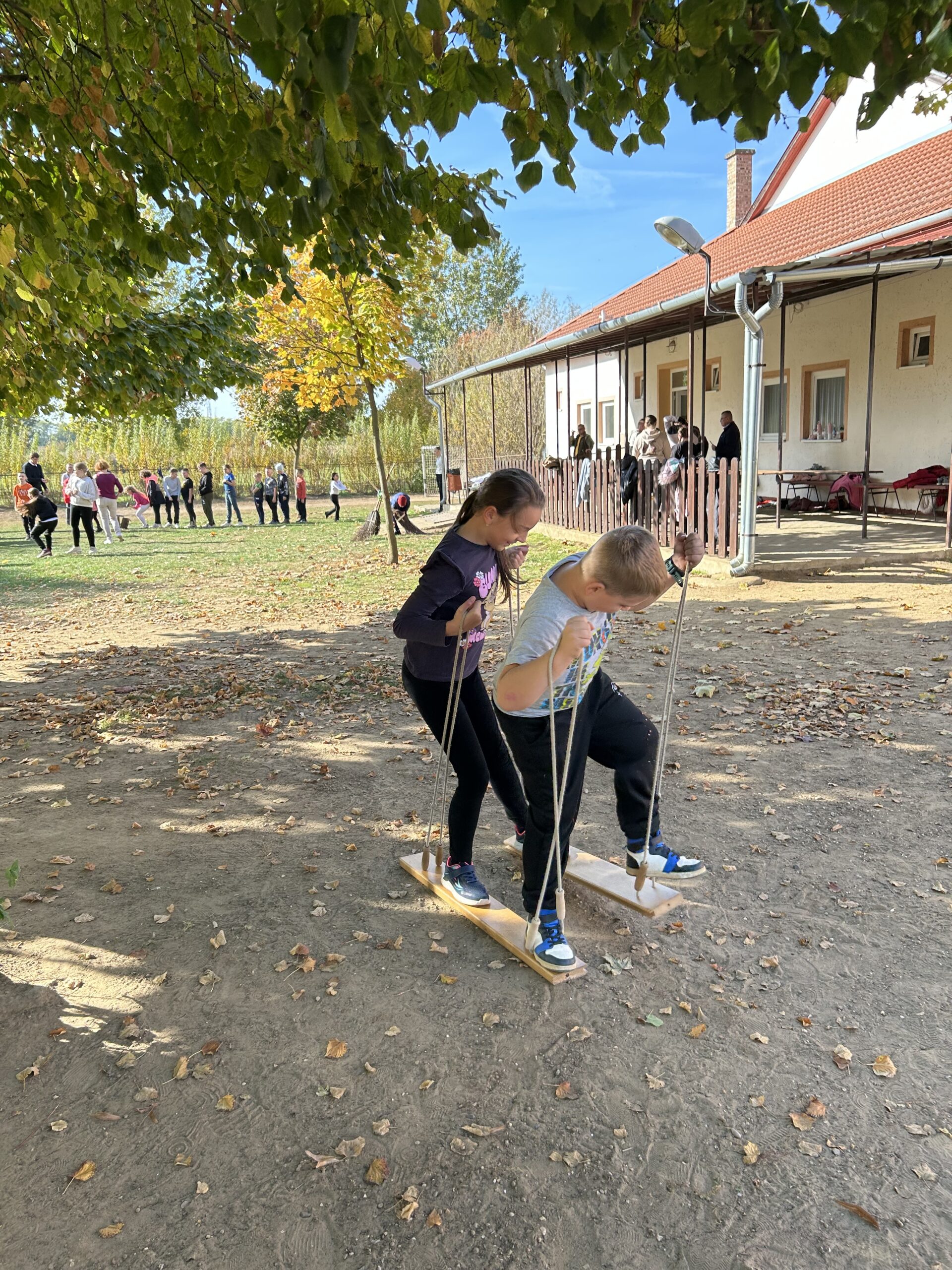 „Tök-Jó Nap” megszervezése: Ez a tematikus nap a jóllét holisztikus megközelítését célozta: a mozgás, a táplálkozás és a relaxáció egyensúlyát. A fókuszban az őszi termések és a velük kapcsolatos hagyományok álltak. Különböző népi ügyességi és mozgásos játékokat (pl. termésgyűjtő verseny, golyóvezetés, hagyományos fogócskák, kötél húzás, célba dobó verseny) próbáltunk ki, amelyek fejlesztik a nagymozgást, a koordinációt és a problémamegoldást, miközben a játék örömét is biztosítják. A közös program csúcspontja a szülőkkel való együttműködés volt. Előzetesen a gyerekek és szüleik őszi termékeket (gesztenye, makk, dió, színes falevelek, kukorica, tökmag-és egyéb magvak) gyűjtöttek. A foglalkozáson ebből készültek őszi dekorációk és figurák, ami lehetőséget adott a minőségi közös időtöltésre és a szülő-gyermek-pedagógus kapcsolat erősítésére. A nap intenzív tevékenységeit egy elcsendesedő, relaxáció zárta le, nyugtató zenét hallgattunk, ami segített a gyerekeknek és a szülőknek egyaránt levezetni a feszültséget és megnyugodni, közben kézműveskedni.