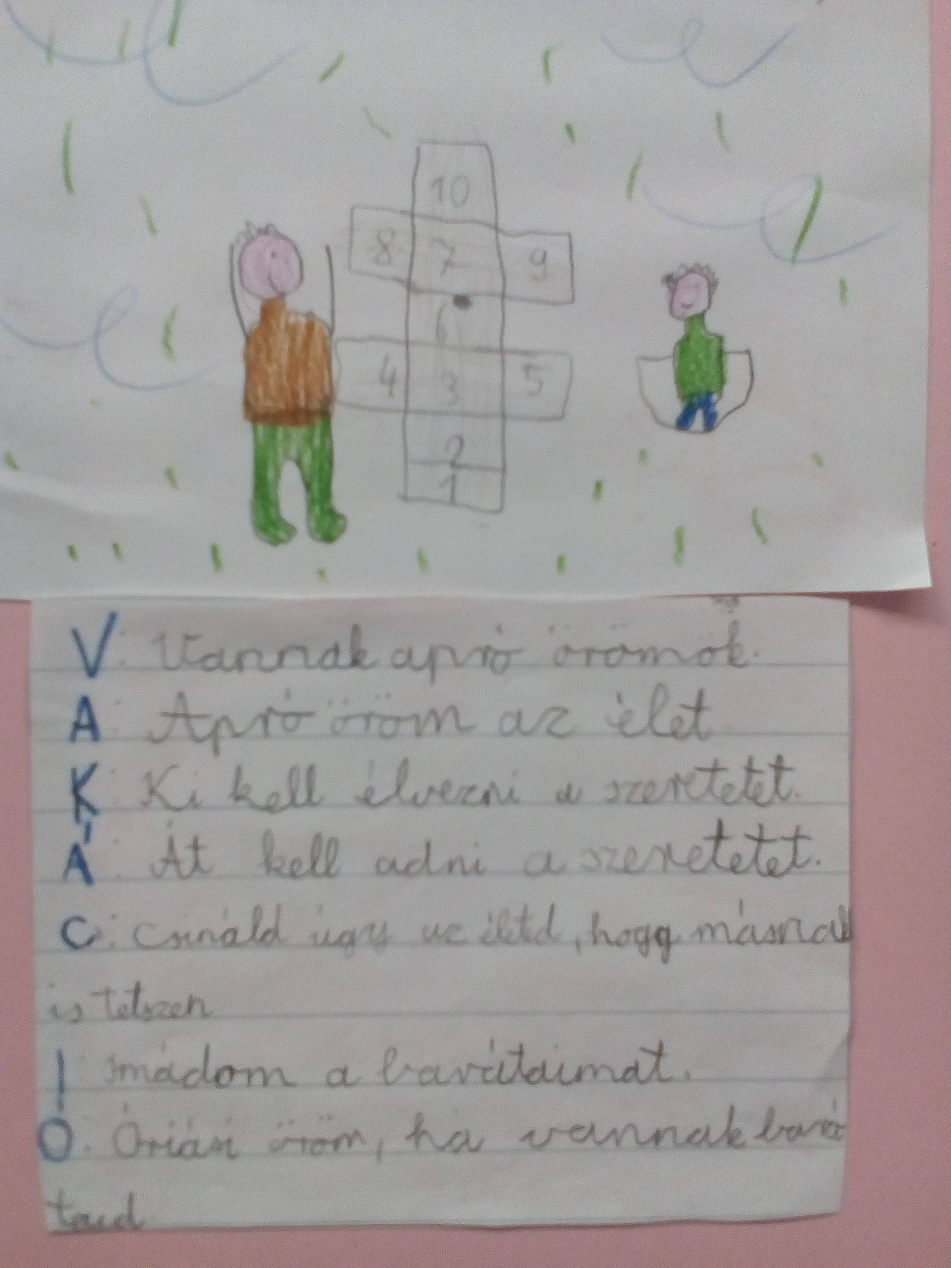 Elérkeztünk az utolsó próbatételhez, hogyan tudjuk fenntartani a boldogságot. Aki ebben a programban benne volt, az megtanulhatta hogyan. Hálásak vagyunk Bagdi Bellának és a csapatának azért a rengeteg plusz élményért, amit ezalatt a tíz hónap alatt átélhettünk. Kinyílott előttünk a világ! Lettek céljaink, új barátokra leltünk, mindig optimistán állunk a problémákkal szemben, megküzdési stratégiákat állítunk fel. Tudjuk, hogy apró örömök teszik szebbé az életünket. Ha jót cselekszünk, boldogok leszünk. Megbocsátunk, bocsánatot kérünk. Jobb emberek lettünk, és ezt próbáljuk átadni másoknak is. Köszönjük, hogy megismerhettük a boldogság titkát!