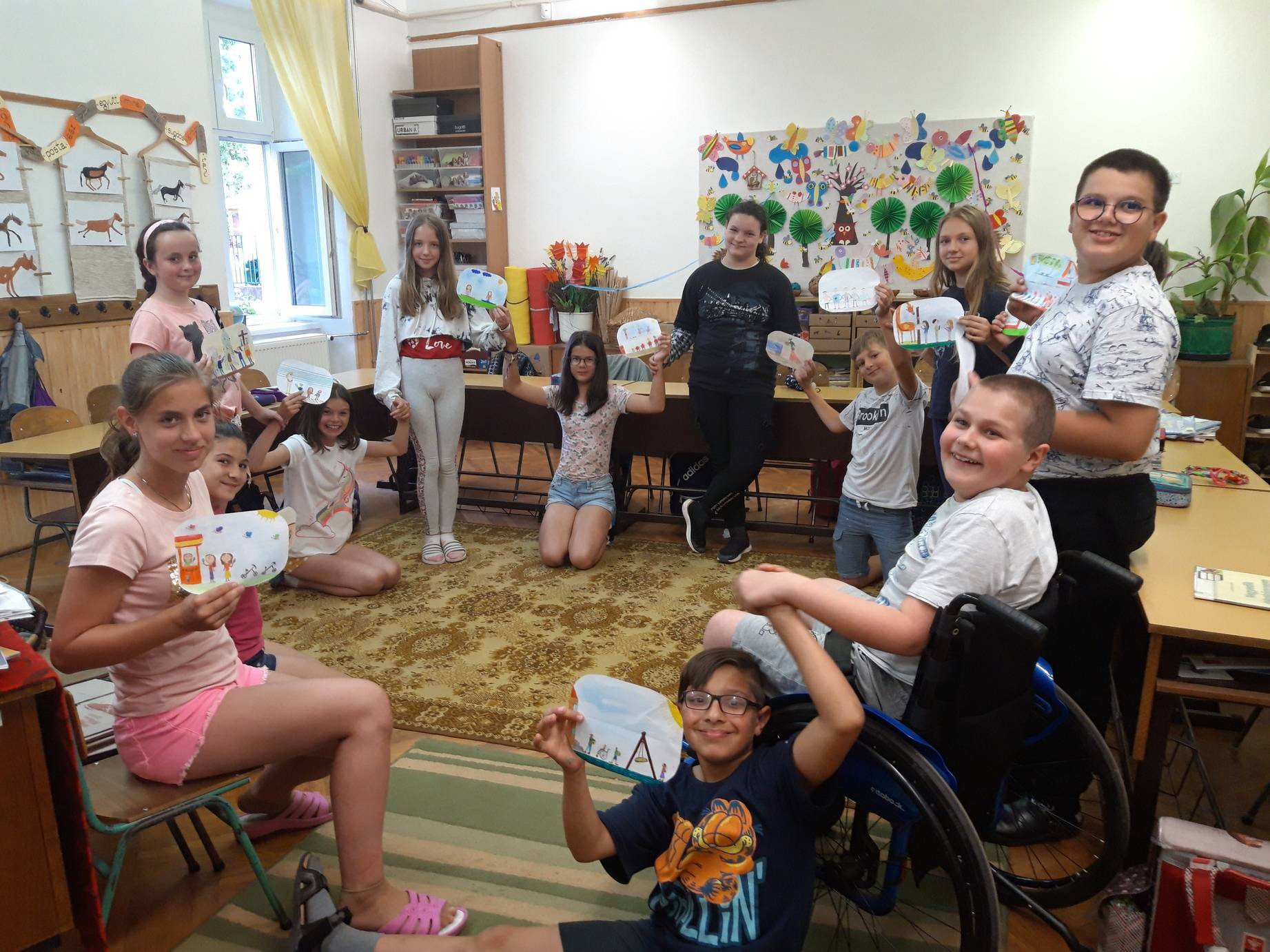 Sajnos idén búcsúznunk kellett… Ezért nosztalgiáztunk… Szép és kevésbé szép élmények kavarogtak a fejünkben, mert az éremnek mindig két oldala van. De mi pozitívan a csodás együtt töltött élményekre koncentráltunk, elmeséltük, eljátszottuk és rajzlapra vetettük. Utána mi magunk voltunk a lánc, amire felfűztük… Egy rendkívül kreatív, tehetséges, rajzos osztály vagytok. Jó lesz a munkáitokra emlékezni, rám hagyott rajzaitokat nézegetni. Minden jót a felső tagozatban is, bontogassátok tovább szárnyaitokat, repüljetek minél magasabbra, váljanak valóra álmaitok… 🙂