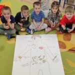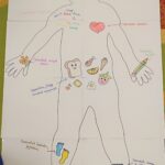 Ez az alkotás a feltétel nélküli önszeretet témájából készült.A gyerekekkel közösen körberajzoltunk egy emberi testet, majd megbeszéltük, mi mindent szeretnek magukban,és mi okoz nekik örömet.Ezután rajzokkal és szavakkal jelöltük a testen belül és kívül is azokat a dolgokat,amiket szeretnek: például kedvenc tevékenységeiket, ételeiket, tulajdonságaikat és érzéseiket.