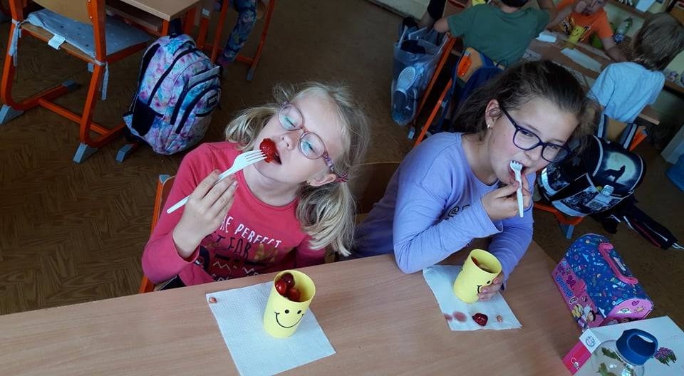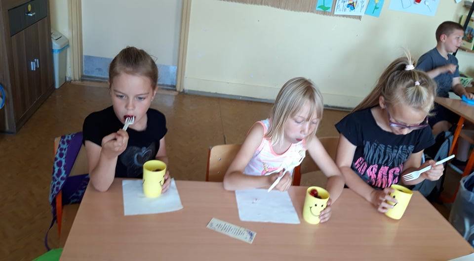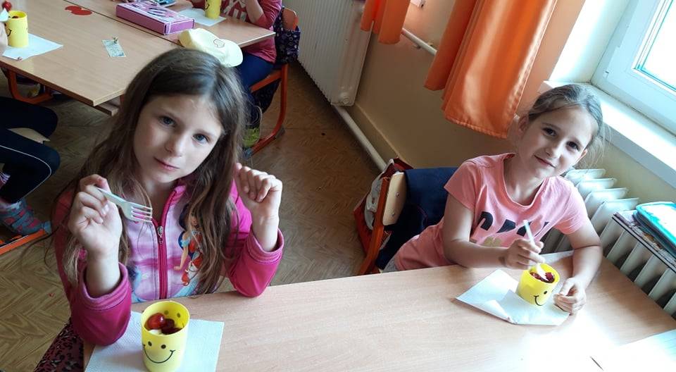 Jutalmul ” kevertünk” magunknak egy „boldogságkoktélt”: A gyerekek javaslata alapján gyümölcsökből készítettük, hogy finom és egészséges legyen! <3