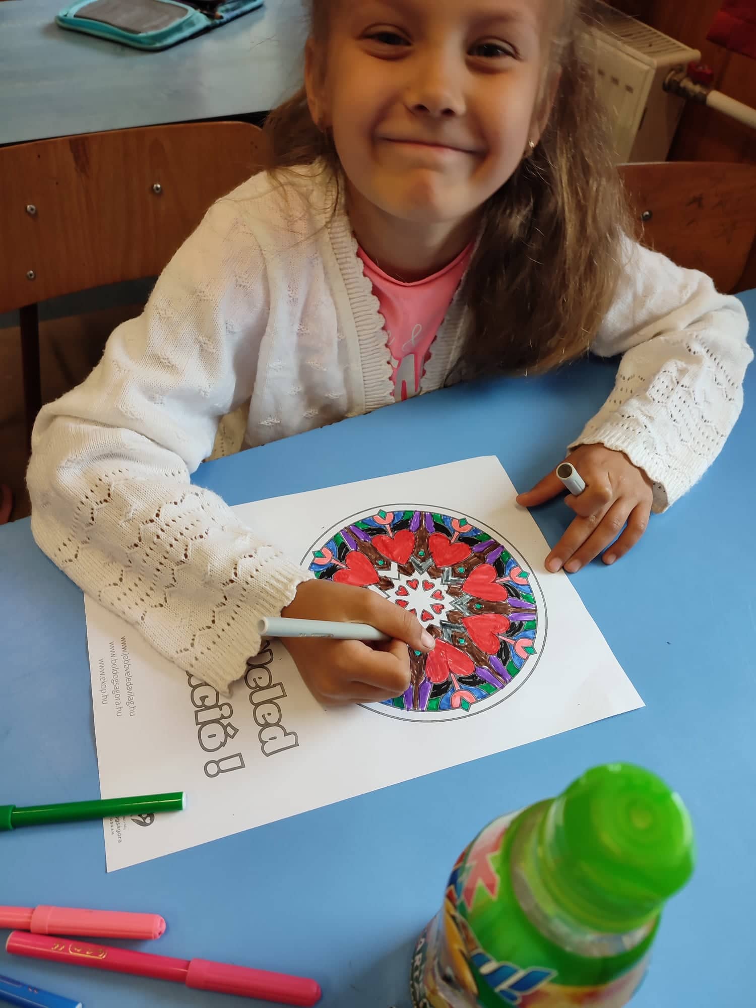 Beszélgetés az év boldogság témáiról, elmesélték kinek melyik hónap teszett a legjobban. Meghallgattuk a jobb veled a világ c. dalt, közben pedig színeztek a gyerekek.