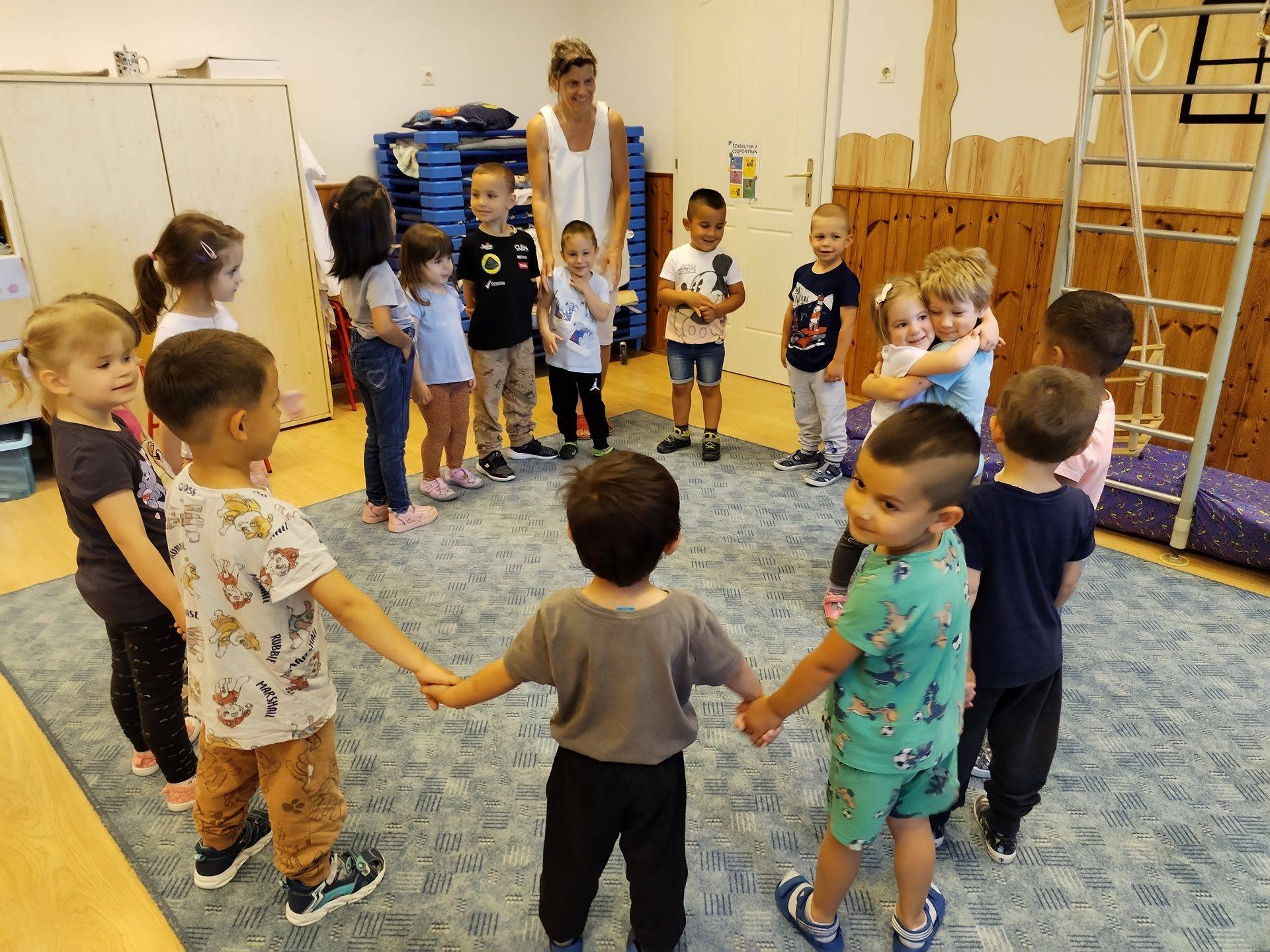-Bagdi Bella: Boldog vagyok című dalát elindítottuk, mikor elhallgatott a zene mindenki megölelt valakit. (nagyon èlveztèk a gyerekek)