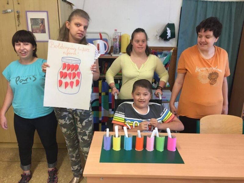 A tanév utolsó hónapjában a fenntartható boldogság témát dolgoztuk fel tanítványaimmal. Felelevenítettük a tanév során feldolgozott témákat, beszélgettünk az egész nevelési évben megélt boldogságórákról, felidéztük, hogy milyen játékokat játszottunk ennek keretében. Mindenki elmondhatta, hogy neki melyik játék, feladat volt a legkedvesebb. A témát többféle feladattal dolgoztuk fel. Készítettünk papírhengerekből boldogság ötlettárat, a papírlapokra mindenki ráírta, hogy melyik volt a kedvenc játéka, majd minden nap eljátszottunk egyet. Közösen elkészítettük a szeretetbefőttünket. Mindenki ráírta a szívecskéjére, hogy mit kíván a szeretteinek, barátainak, társainak a nyárra. Relaxációs gyakorlatokat végeztünk. A csodapalota című mese meghallgatása után az egyes témakörökhöz, szobákhoz kapcsolódó játékokat eljátszottuk, közben felelevenítettük a régebbi feladatokat is. Megnéztük a tanév során készült fotókat és szinte mindenkinek volt egy-egy emléke, amit elmesélt. Meghallgattuk a hónap dalát, ami tetszett a gyerekeknek, és elénekeltük kedvenc Bagdi Bella dalunkat. Júniusban is nagyon sok alkalom nyílt, amikor örömteli perceket élhettünk meg együtt az osztállyal. Az együtt átélt örömök tovább mélyítették csoportunk közösségét.