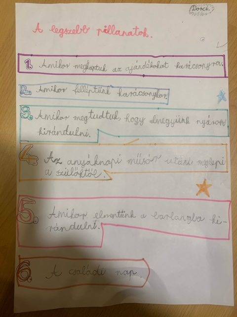 Az év zárásaként erdei iskolába mentünk, és ott összeszedtük, mi minden öröm ért bennünket a tanév során.