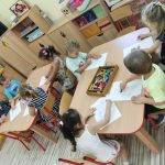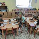 Majd a gyerekek az asztalokhoz ülve egy nyári témájú képet színeztek, festettek ki színesceruzákkal.