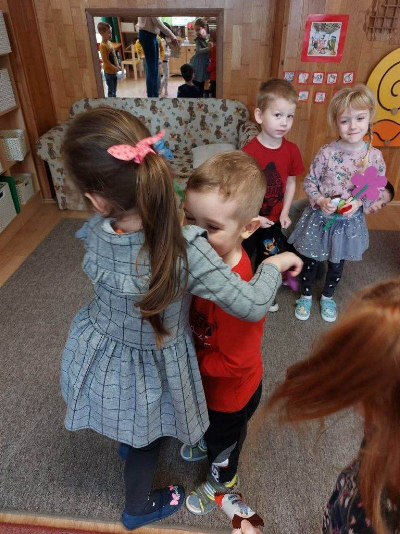 A foglalkozást egy relaxációval kezdtük, hogy a gyerekek kicsit visszacsendesedjenek. A relaxáció után közösen eljátszottuk a Seprűtánc játékot, ami azért tetszett nekik nagyon, mert nem kiesős játék volt, hanem mindenki a játékban maradt. Bagdi Bella: Jobb veled a világ című dalára az Öleléslánc játékot játszottuk, én indítottam az ölelést és addig csináltuk, míg vissza nem ért az ölelés. A foglalkozás végén elmeséltem nekik a Boldog erdő- Kerekerdő című mesét. Mivel a csoportba járó gyerekek még kisebbek, ezért a mesét kicsit lerövidítettem.