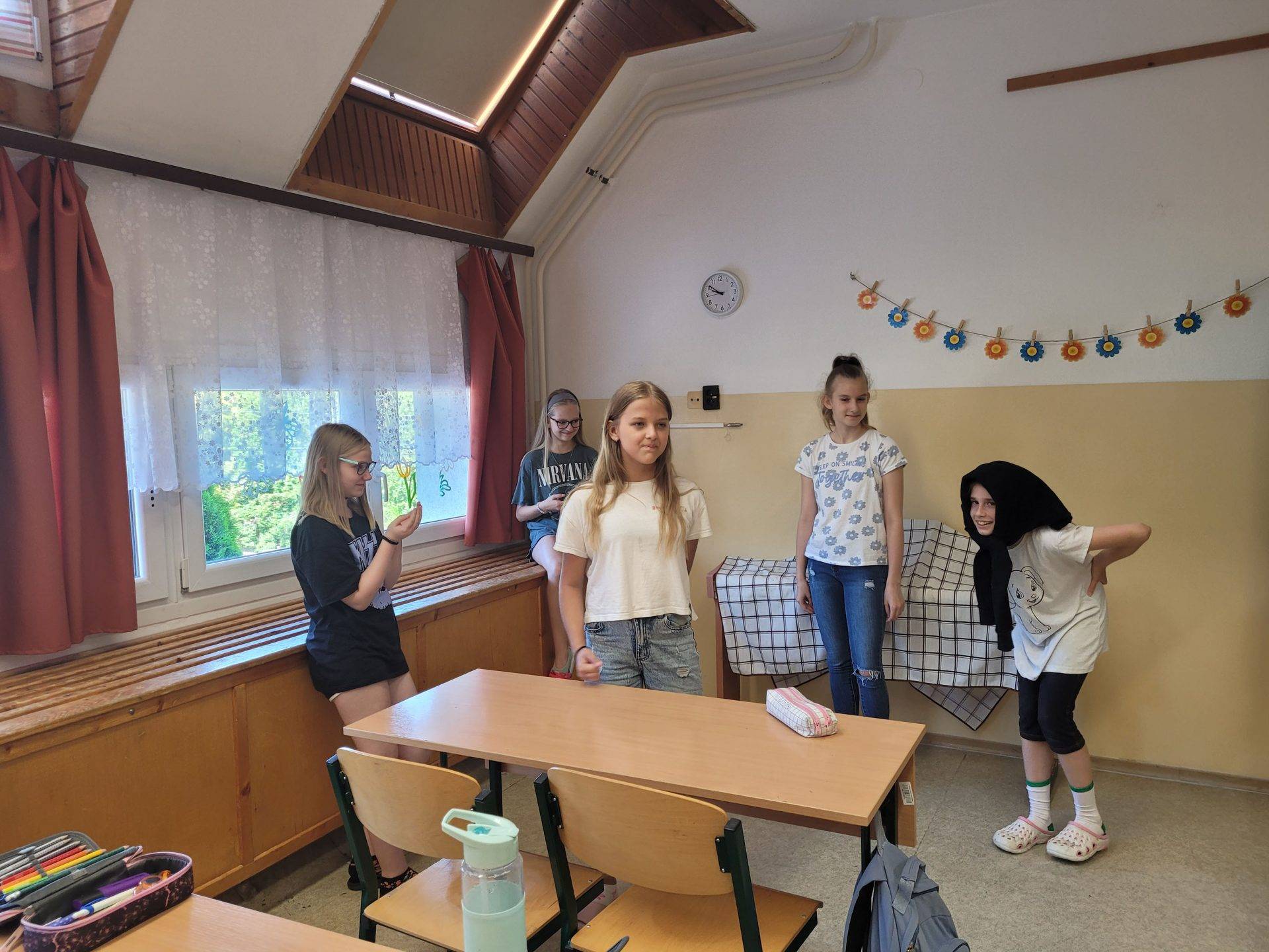 A tanév utolsó hónapjának témája a „Fenntartható boldogság” volt. Ez lehetőséget adott arra, hogy felidézzük mindazt, amivel eddig foglalkoztunk, amiről eddig beszélgettünk. Mindenki ónállóan végig gondolta egy skála segítségével, hogy változott-e a tanév során. Utána gyönyörűen megfogalmazták a gyerekek, hogy miben szeretnének még fejlődni és mivel elégedettek önmagukkal kapcsolatban. A foglalkozás további részében családi jeleneteket játszottak el, ahol előtérbe kerülhettek a színészi képességeik is. Jókat nevettünk, vidám hangulatban teltek ezek a percek. Ezt követően dobókockás játékot játszottak és rejtvényt fejtettek a „boldogság” fogalmával kapcsolatban. Azután a boldogságkeresésről beszélgettünk, majd megfogalmazták azt, hogy mit jelent számukra a fenntartható boldogság. Az órát meditációval és Bagdi Bella dalával zártuk.