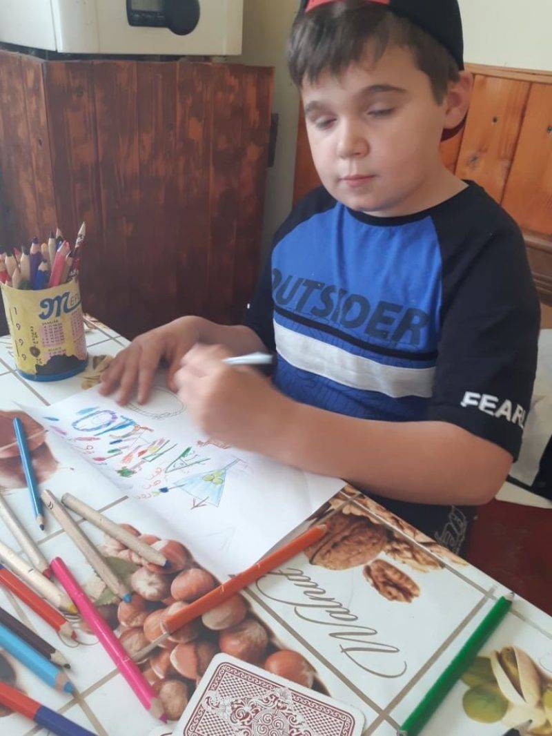 A digitális tanmenetre való átállás miatt a Boldogságórák megtartását át kellett gondolnom. A gyerekek szerették volna, ha folytatjuk, így küldtem nekik az anyagot, de többnyire rajzokat kértem vissza. A szülők sokat segítettek, mert az elküldött meséket elolvasták a gyerekeknek.Kértem a gyerekeket, hogy azt rajzolják le: mi jut eszükbe a Boldogság órákról?