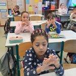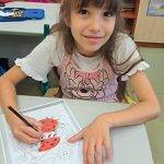 Ezután elolvastuk a Katica elveszett pöttyei című mesét. Beszélgettünk arról, hogy milyen érzést okozott nekik saját maguknak a szereplők viselkedése. Volt-e olyan érzésük, amit kellemetlennek éltek meg. Kiszíneztek egy nekik tetsző szereplőt: Kiskaticát, Nagykaticát, Tücsök Kázmért, Lepke Piroskát, Mézikét, Hangya Alfrédot, Csiga Oszkárt, az Igazságos Tündért, vagy egy képkockát a meséből.