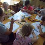 A Boldogságóra Program utolsó, a Fenntartható Boldogság témáját, a Boldog erdő- Kerekerdő mese meghallgatásával kezdtük. A mese tartalmának megbeszélése kapcsán felidéztük mindazokat a témákat, amelyekkel az idei tanévben foglalkoztunk. Ezt követően mindenki tetszése szerint kiszínezhette a boldogságfüzért, melyet felhelyeztük a Boldogságvár tizedik lépcsőfokára is, jelezve, hogy célba értünk. A Boldogság várába való bejutás örömére öleléslánccal zártuk az ez évi utolsó boldogságórát.