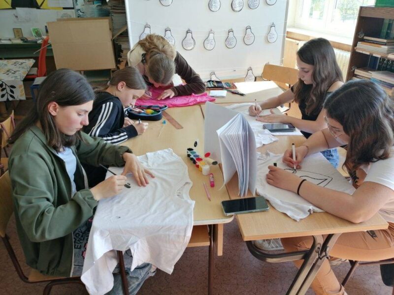 Tanmese felolvasása közben mindenki motiváló idézetet választott magának, amit a magukkal hozott ruhadarabra textilfilccel felírhattak, valamint rajzolhattak is hozzá.