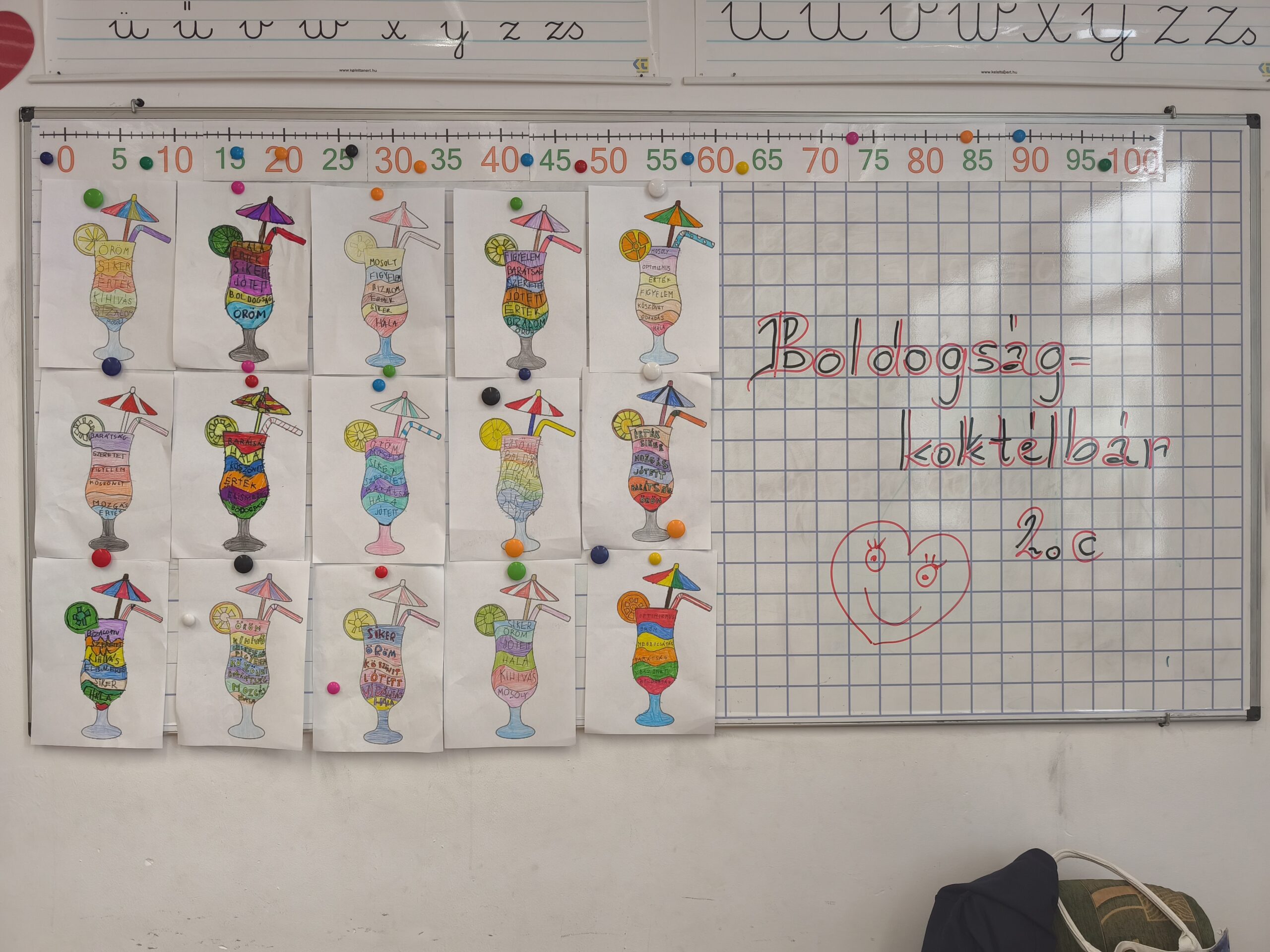 Elérkeztünk a Boldogságóra Program ez évi utolsó témájához, mely a Fenntartható boldogság volt. Az utolsó foglalkozáson összegeztük, mi mindent kell tennünk-gyakorolnunk ahhoz, hogy jól érezzük magunkat világunkban. Felidéztük az egyes hónapok témáit, legkedvesebb emlékeit, elkészített alkotásait. Áttekintettük az évközben alkalmazott boldogságteremtő és – fokozó technikákat, melyek a mindennapi életünket szebbé teszik, segítenek legyőzni a stressz, a szorongás leküzdésében. Az összegzésben nagy segítségünkre volt „ A csodapalota” c. mese feldolgozása. A palota kilenc, különleges szobáját bejárva, átismételtük a program mind a kilenc témáját. Megnéztük a foglalkozásokon készült fotókat, és nagy mosolygások közepette szeretettel emlékeztünk a szép pillanatokra. Természetesen, nem maradhatott el a kézműveskedés sem, hiszen június 10-én ünnepeljük a kézművesség világnapját! Minden gyerek elkészítette a saját „boldogságbefőttjét”. A befőttesüvegbe belekerült minden olyan fontos momentum, mellyel konzerválhatjuk a boldogságunkat. Beköszöntött végre az igazi nyári idő, így jött az ötlet, hogy a diákok készítsék el a saját „boldogságkoktéljukat”. Majd végül megörökítették a saját, boldogságtól ragyogó arcocskájukat is. Megosztottam a tanulóimmal a program által összeállított „napi boldogságfokozó gyakorlatokat”, biztatván őket, hogy nyáron kedvük szerint végezzék el, próbálják ki azokat. A bizonyítvány mellé, egy borítékban minden gyerek megkapja a kinyomtatott kártyákat.