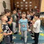 Ráhangolódásként „Szeretet folyosót”alkottunk a gyermekekkel, amin mindenki átkelt s közben elmondtuk a rá jellemző pozitív tulajdonságokat.
