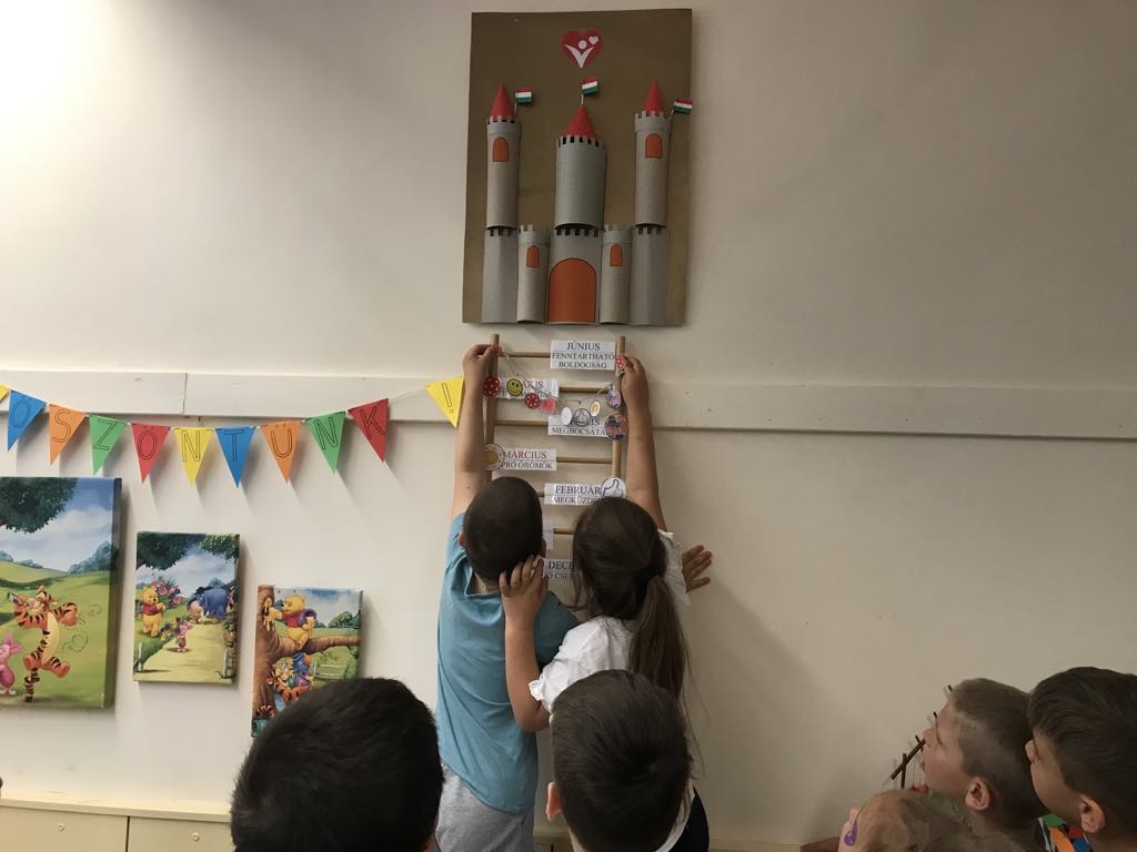A foglalkozás zárásaként megérkeztünk a Boldogság várához és felraktuk az utolsó létrafokra „boldogságfűzérünket.
