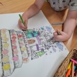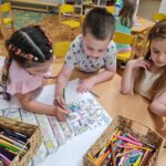 Az utolsó lépcsőfok után kiszínezték a gyermekek a várat valamint a tk. 211. oldalán található mesét is elolvastam nekik. A beszélgető körben pedig a lépcsősort és a várat megcsodálva átismételtük a hónapokat és a hozzájuk kapcsolódó témákat.