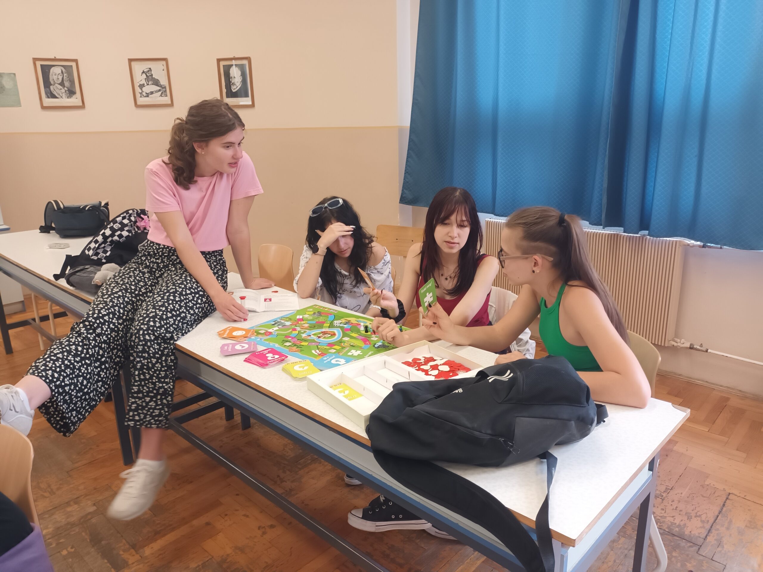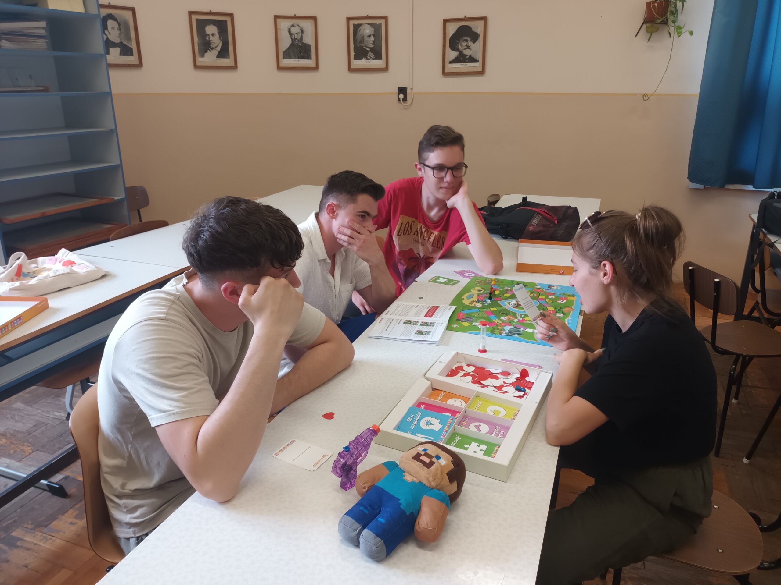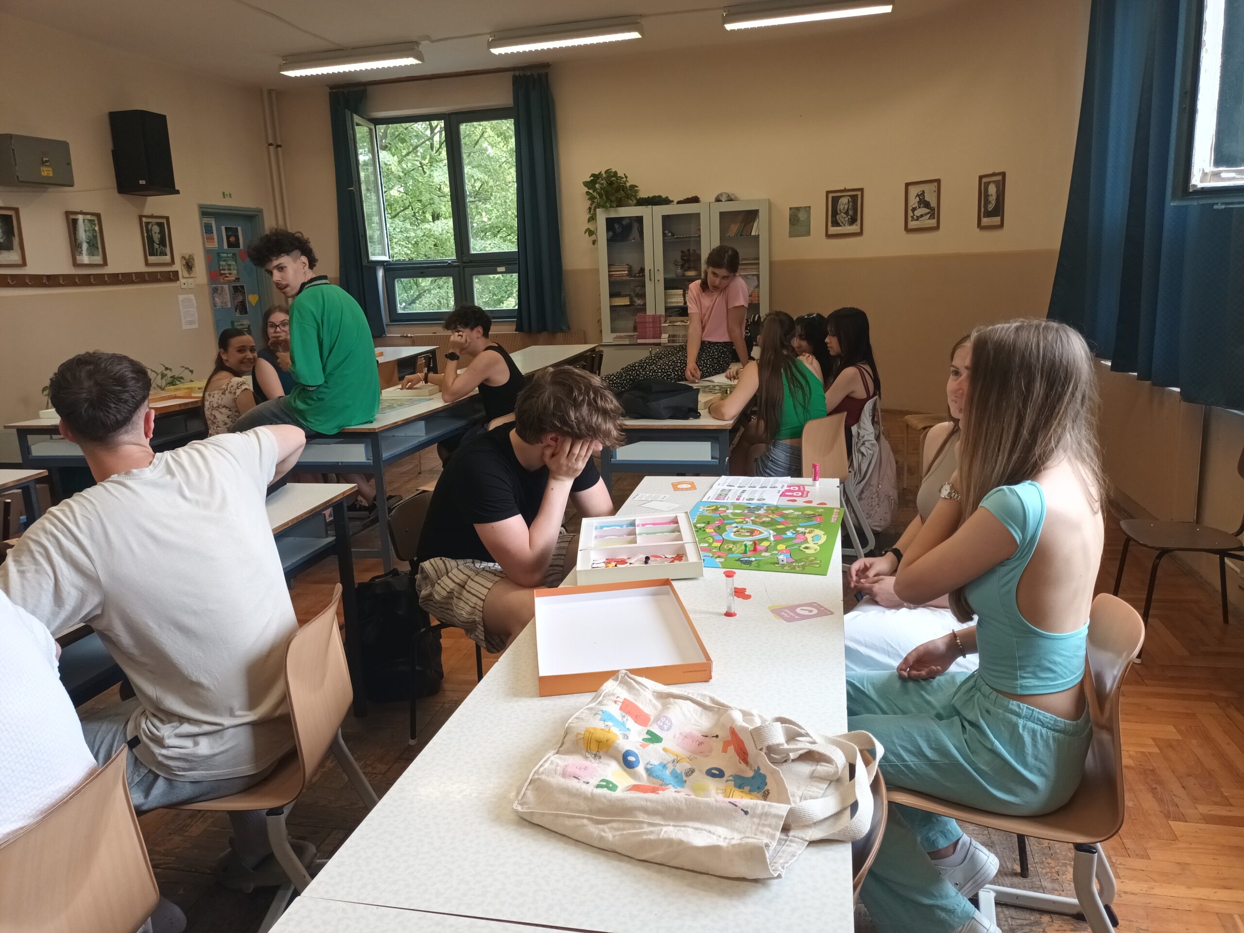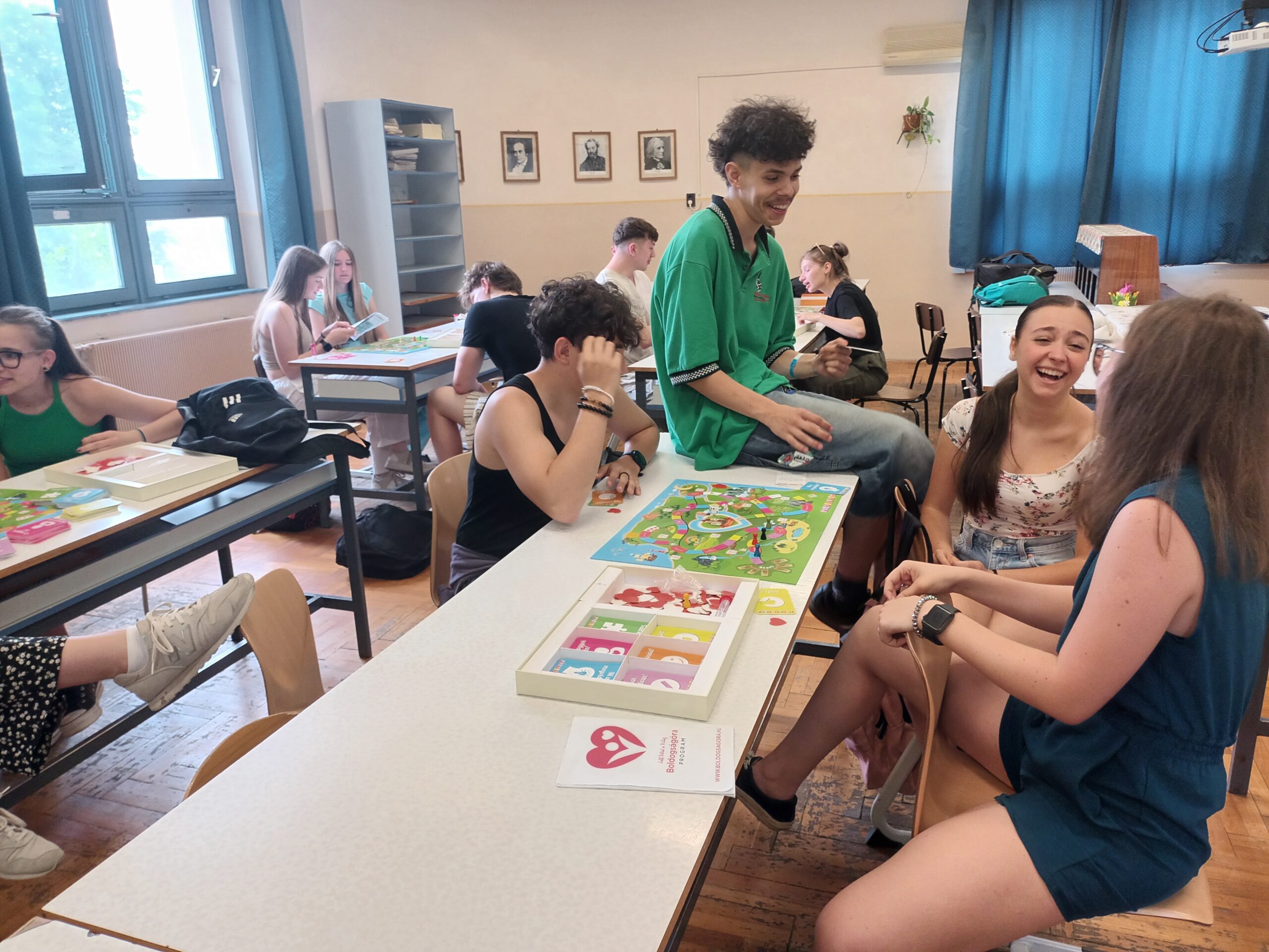 Az órára bevittük a Pozitivity társasjátékot, amit kisebb csoportokban kipróbálhattak a diákok. Nagyon elnyerte a tetszésüket, igazán jókedvre derültek a feladatok megoldása közben.