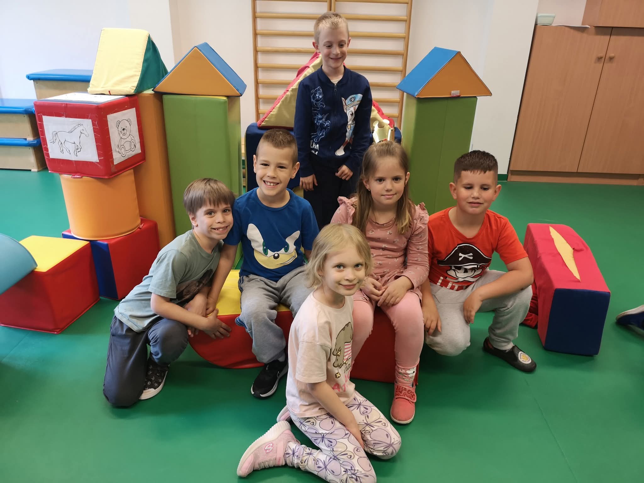 A csoportban kirakott boldogságvárunkon megszámoltuk hány lépcső vezetett a a célunkig, ahová végre mi is felértünk. Közösen felelevenítettük boldogságórás élményeinket, majd megépítettük nagy szivacselemekből a boldogság várát.