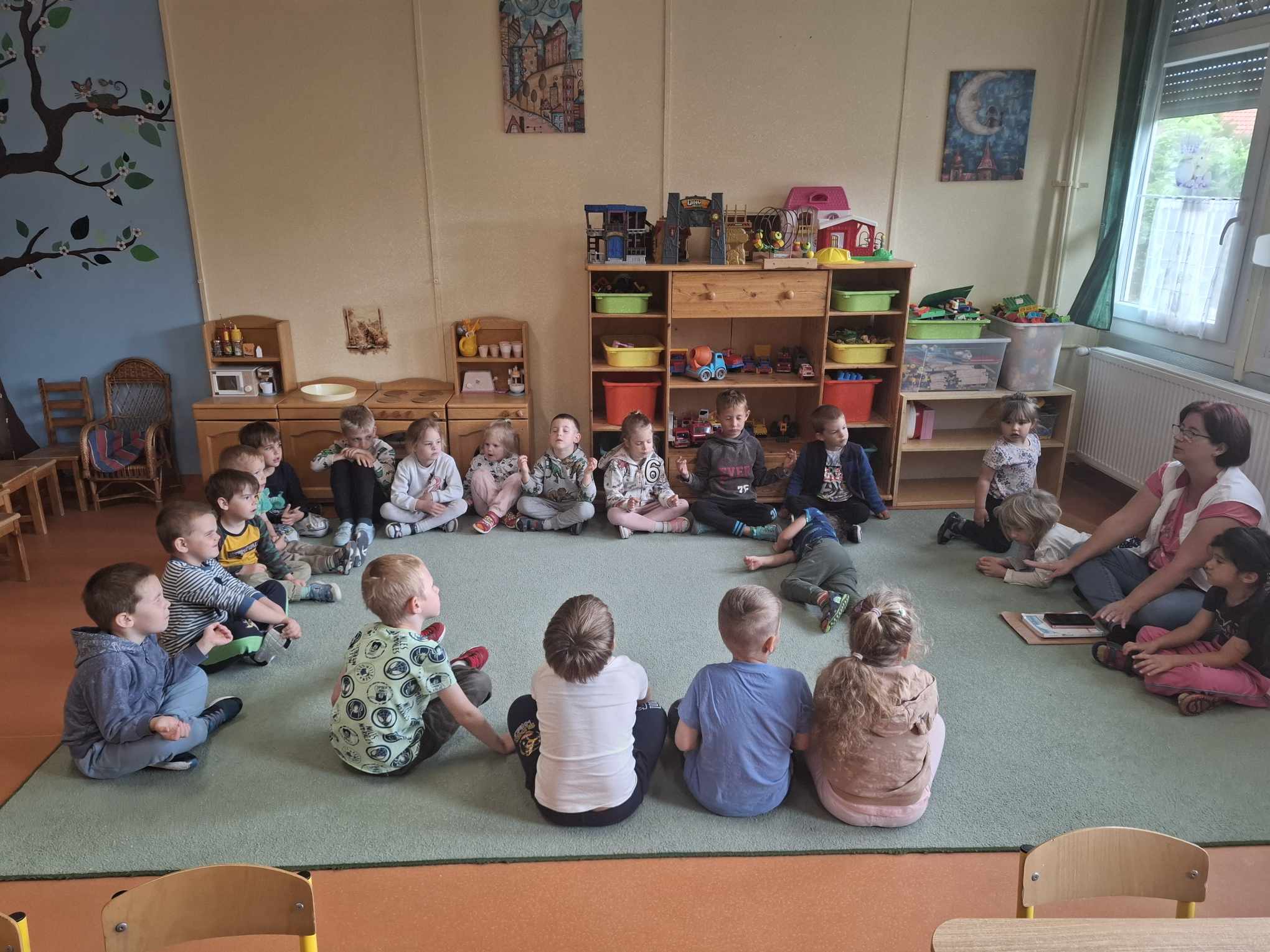 Meghallgattuk Bagdi Bella „Jobb veled a világ” című dalát. Egymás kezét fogva körbejártunk, közben mi is próbáltuk énekelni.