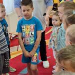 – Körben énekelve, majd egyenként „jócselekedet-kártyát” húznak (pl. „ma segíts valakinek”, „ölelj meg valakit”, „gyűjts egy szemetet össze”).