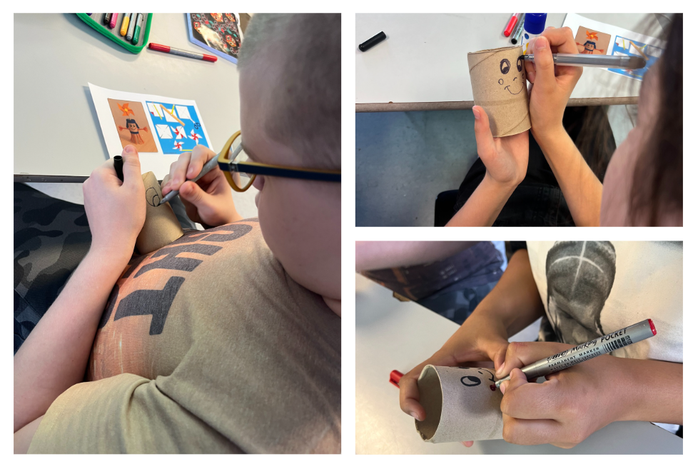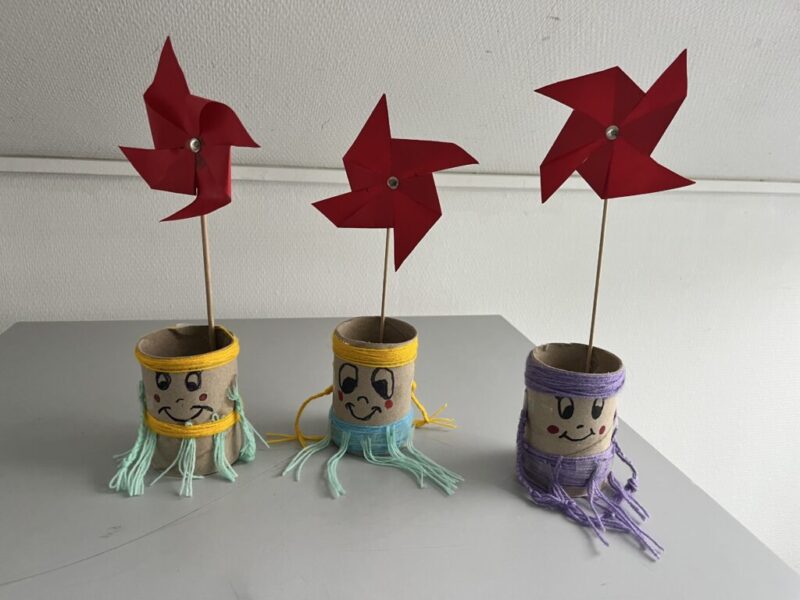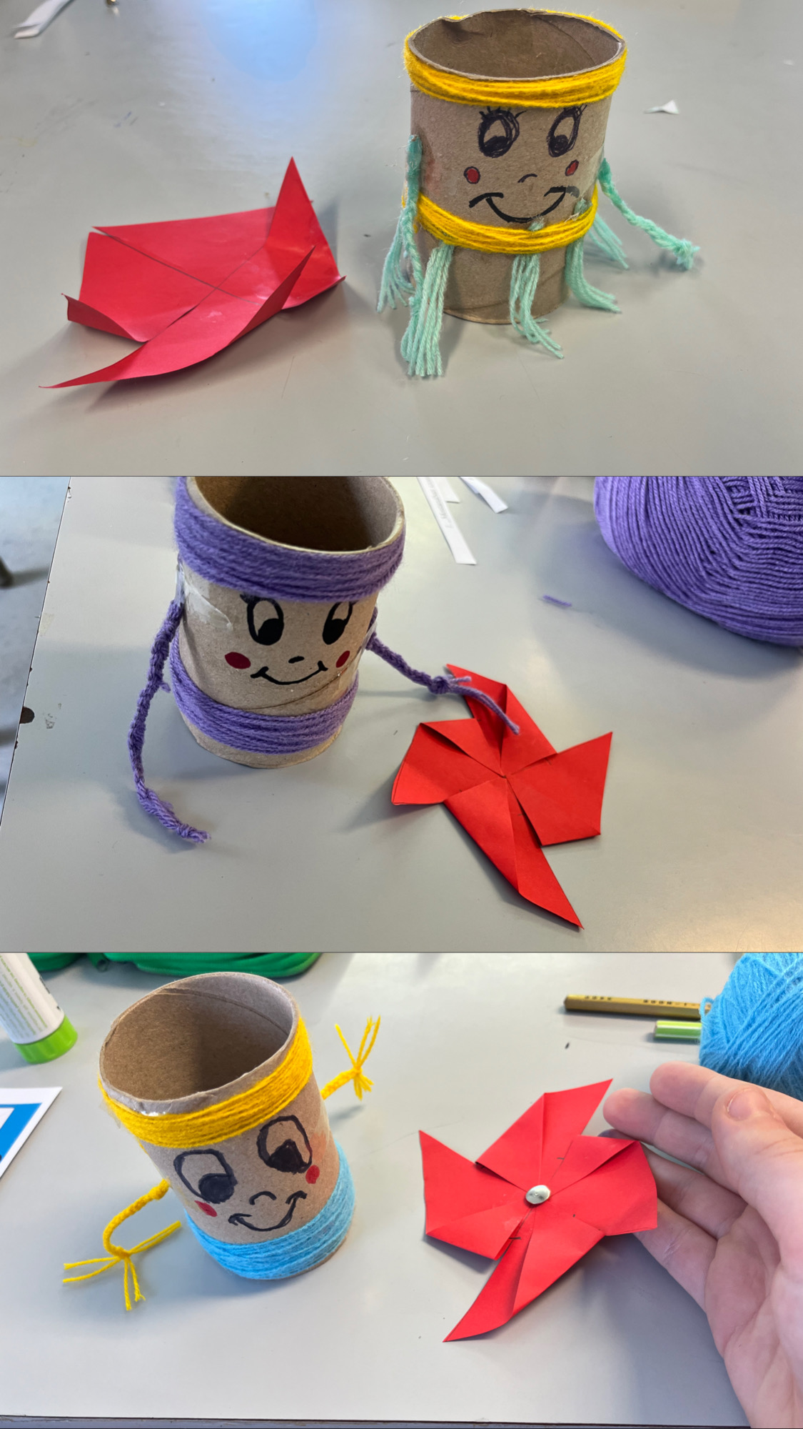 A foglalkozás végén a gyerekek a „Jövő feltalálói” szerepben újrahasznosítható anyagokból készítettek hasznos vagy vicces találmányokat. Például WC-papír gurigából és fonalból „Szellőmanót” alkottak, amely színes és játékos kiegészítőként örömet szerezhet. A közös munka során fejlődött a kreativitásuk, az együttműködésük és a környezettudatosságuk is.