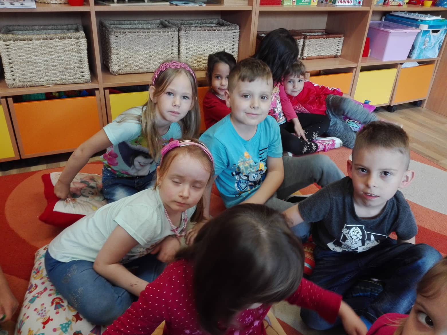 Emlékidézés: A gyerekek kedvence a mese-percek, mely furulyaszóval indul /Magyar népmesék/ és relaxációval vagy drámajátékokkal ér véget. A répa és A kiskakas gyémánt félkrajcárja a kedvenc. Annamari igazi tehetség mesemondás terén.