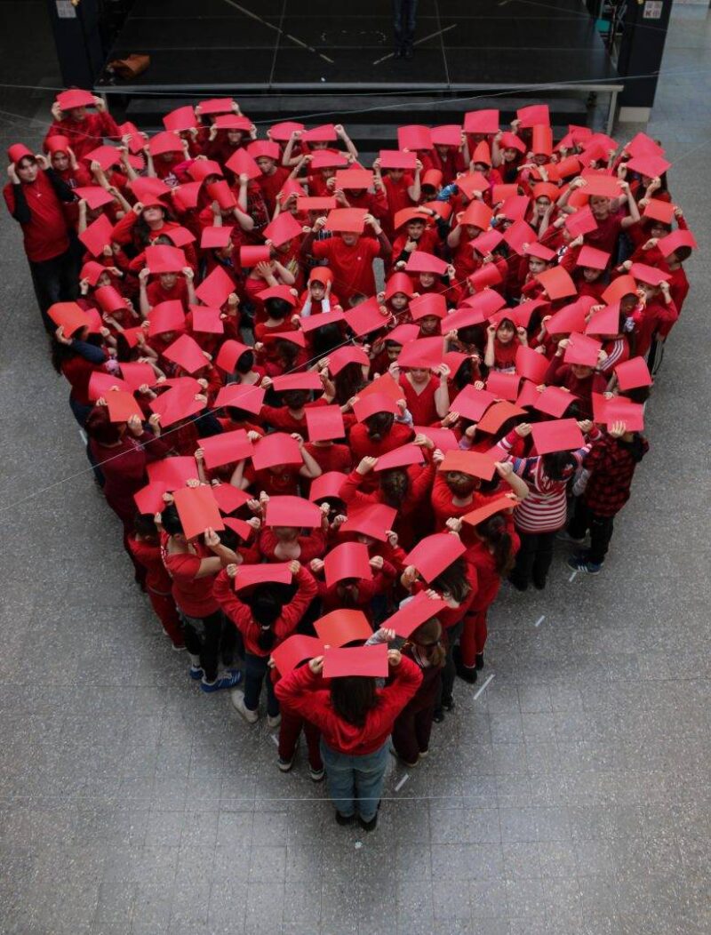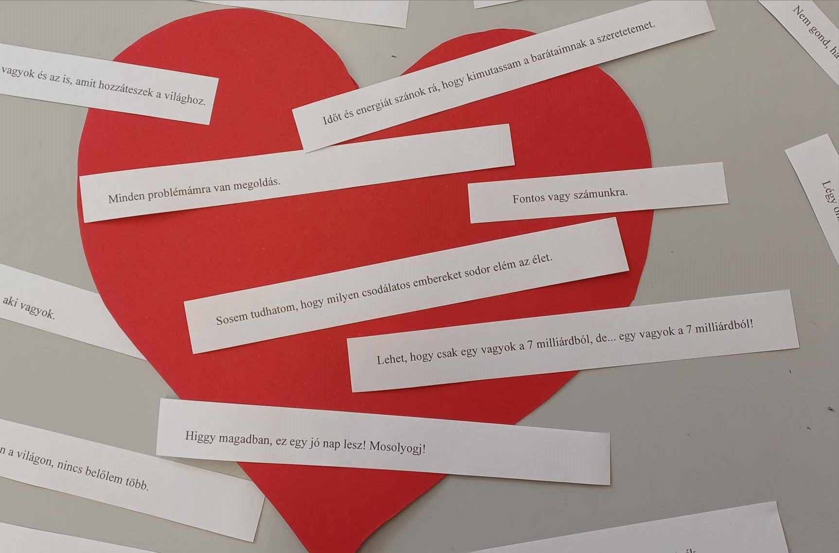 Az iskola aulában alkottunk egy óriás szívet, hogy kimutassuk összetartozásunkat és szeretetünket.