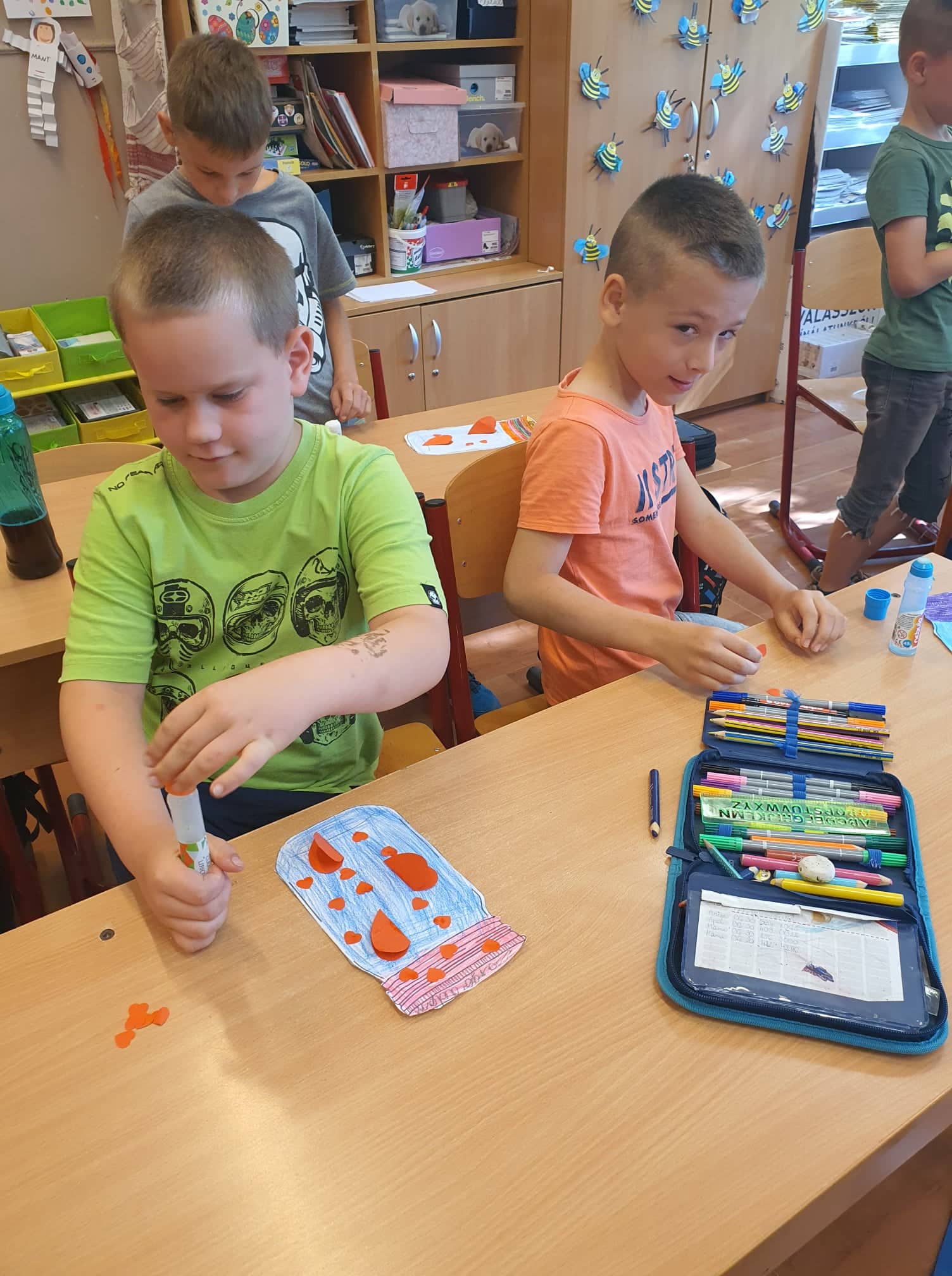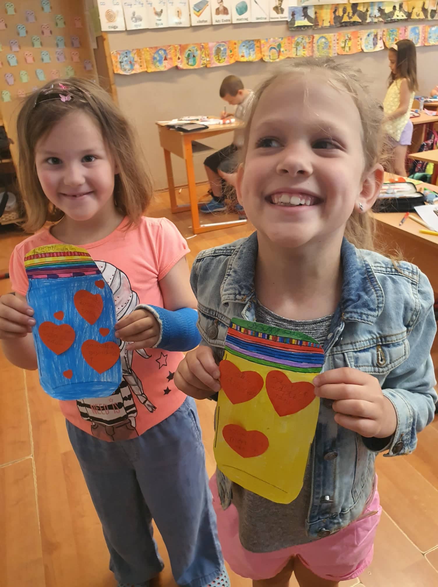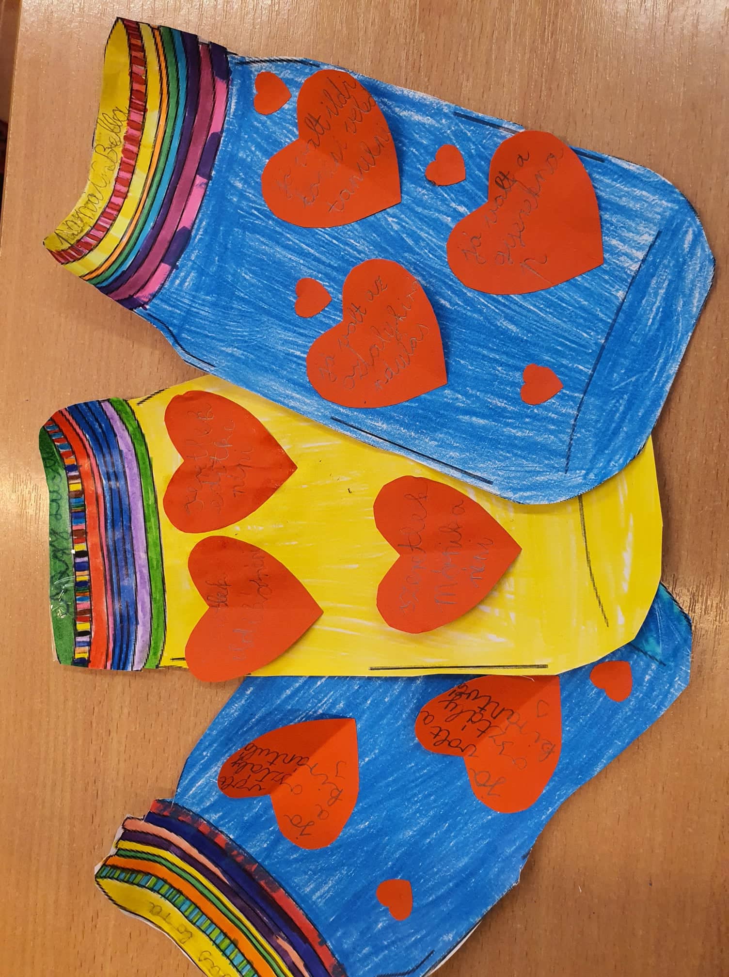 A beszélgetés után emlékbefőttet készítettek a gyerekek, melyre kis szívecskéket ragasztottak. A szívekre ráírhatták, hogy mi volt a legjobb élménye az iskolában. A végén megmutatták alkotásaikat és felolvasták a szívecskékre írt feljegyzéseiket.