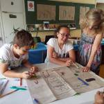 Csoportokba szerveződve kaptak egy-egy csomagolópapírt,s ki-ki párjával vagy többen,lerajzolták azokat a képeket,amik a leginkább bennük maradtak az órák kapcsán.