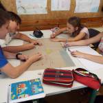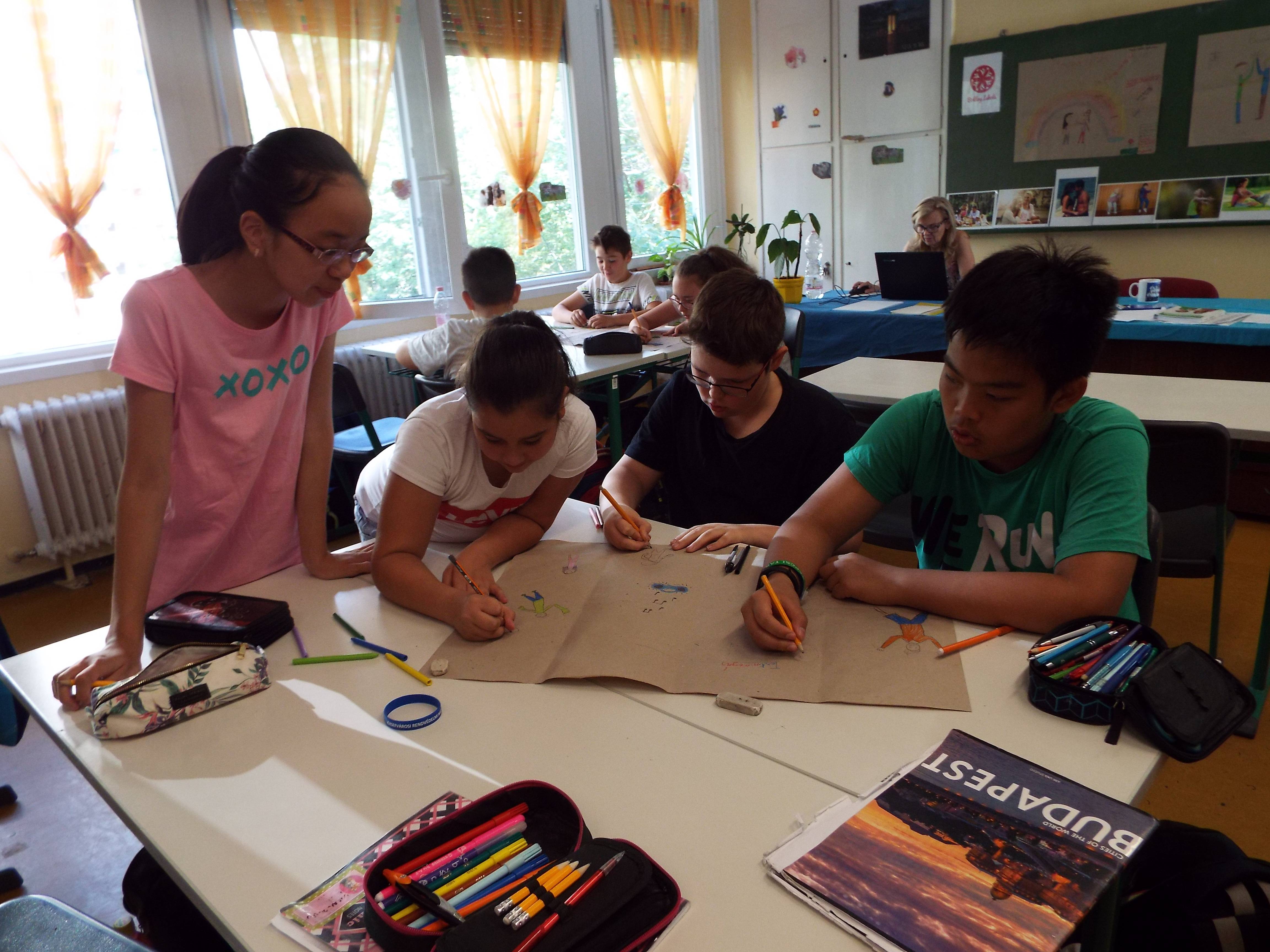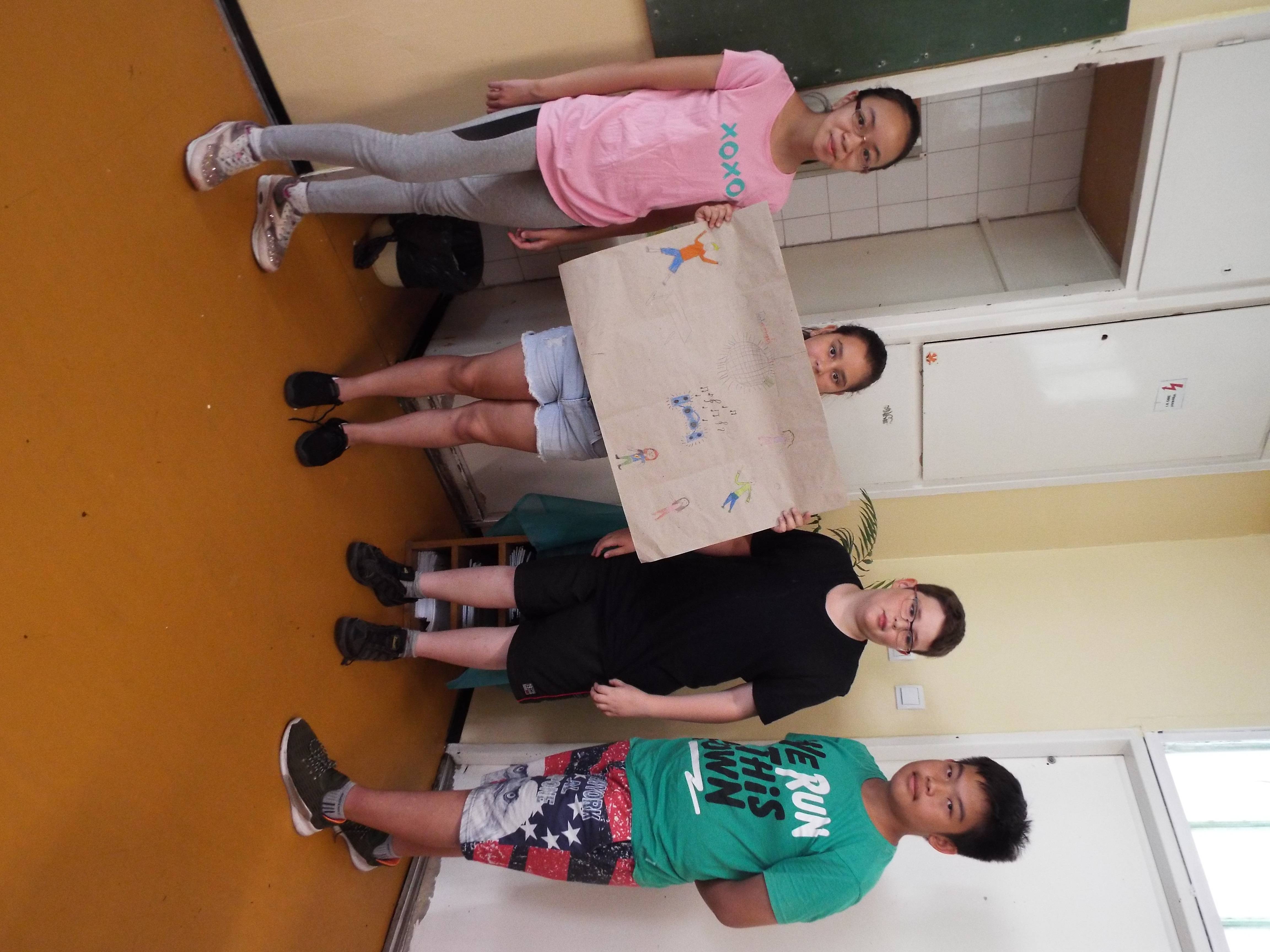 Csoportokba szerveződve kaptak egy-egy csomagolópapírt,s ki-ki párjával vagy többen,lerajzolták azokat a képeket,amik a leginkább bennük maradtak az órák kapcsán.